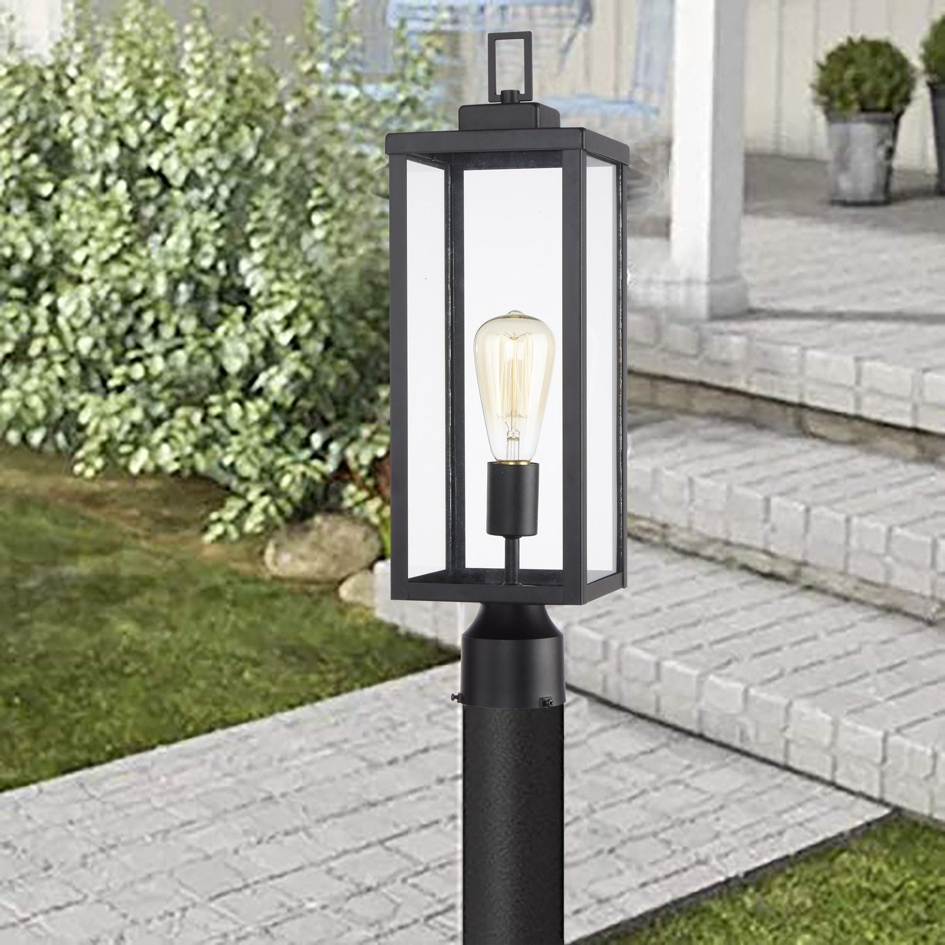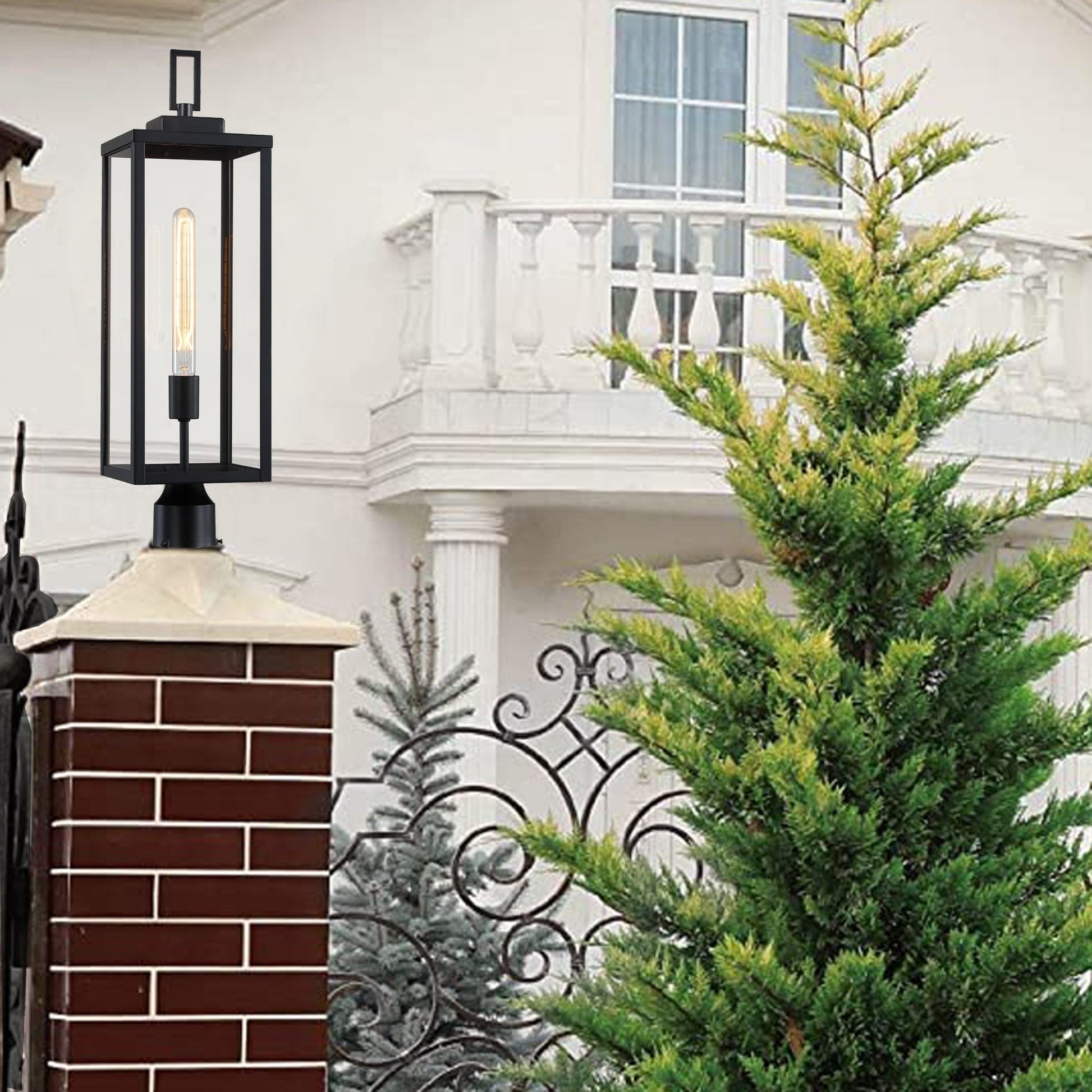 Kit d'éclairage extérieur sur poteau noir mat à 1 ampoule avec tête en verre transparent