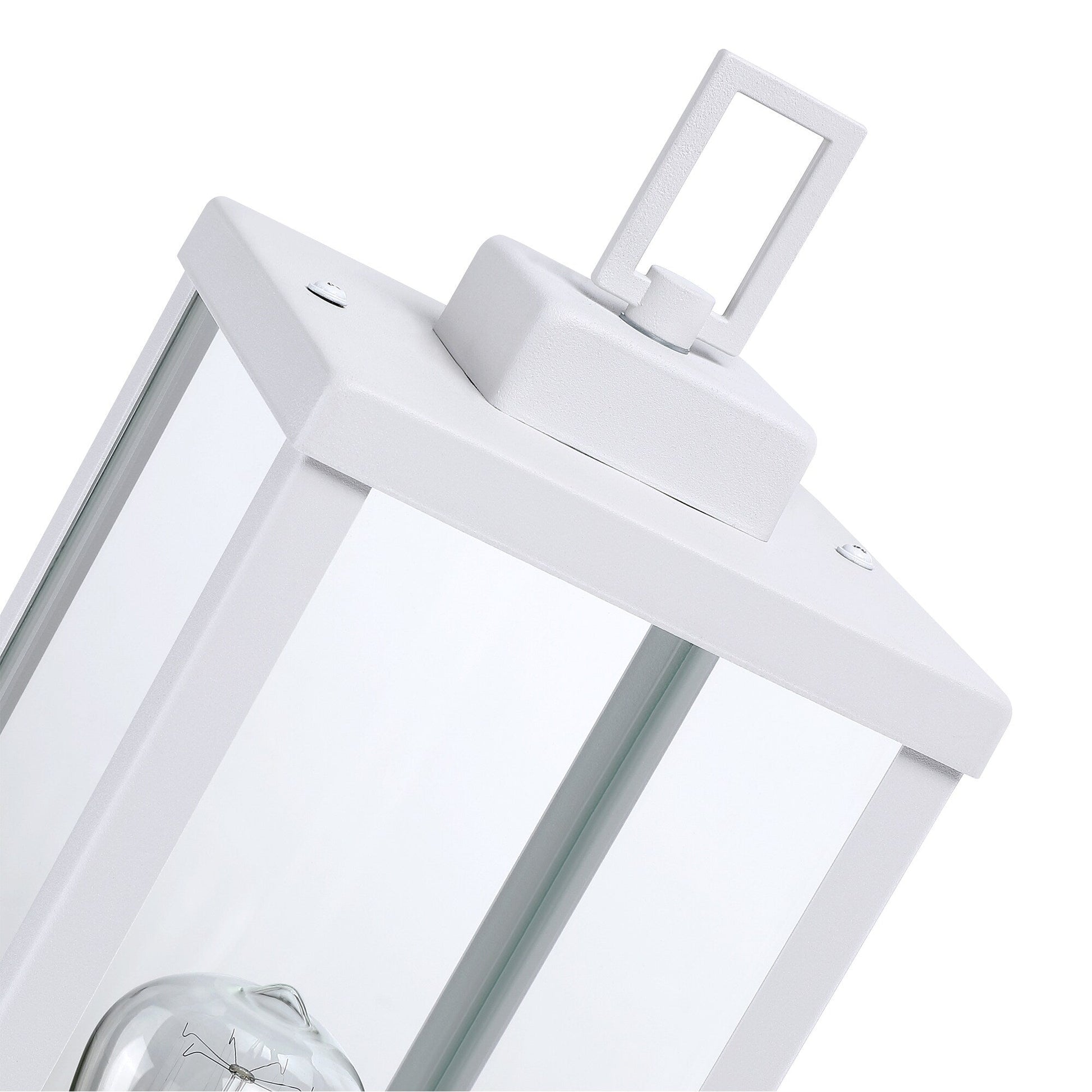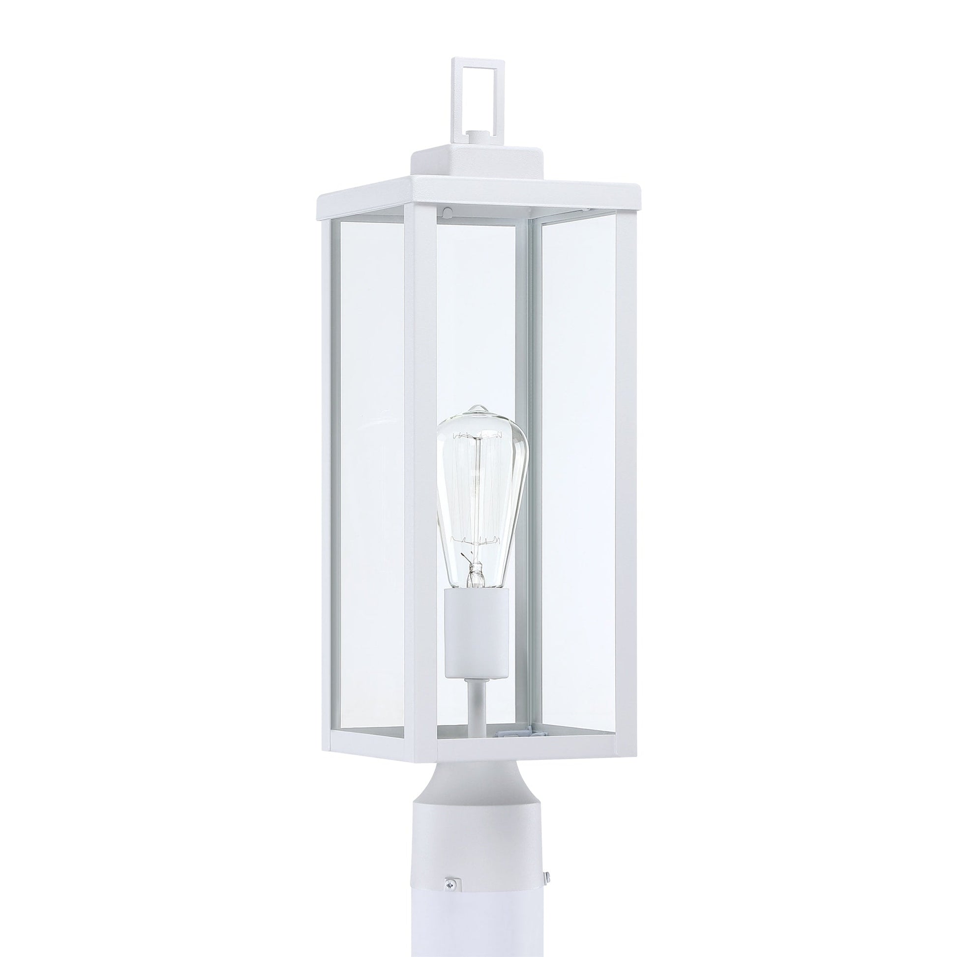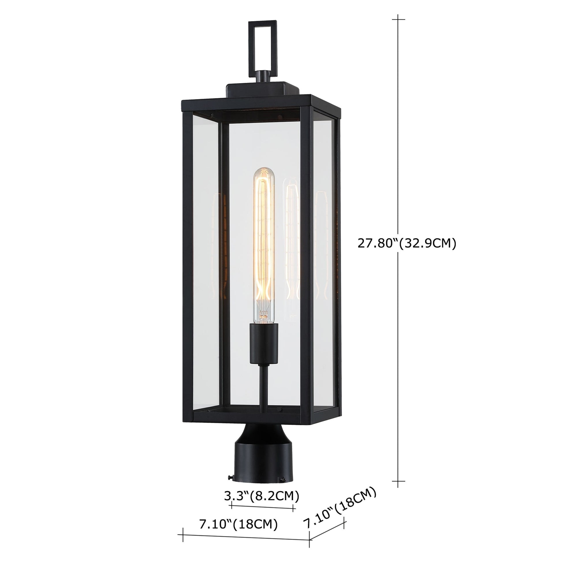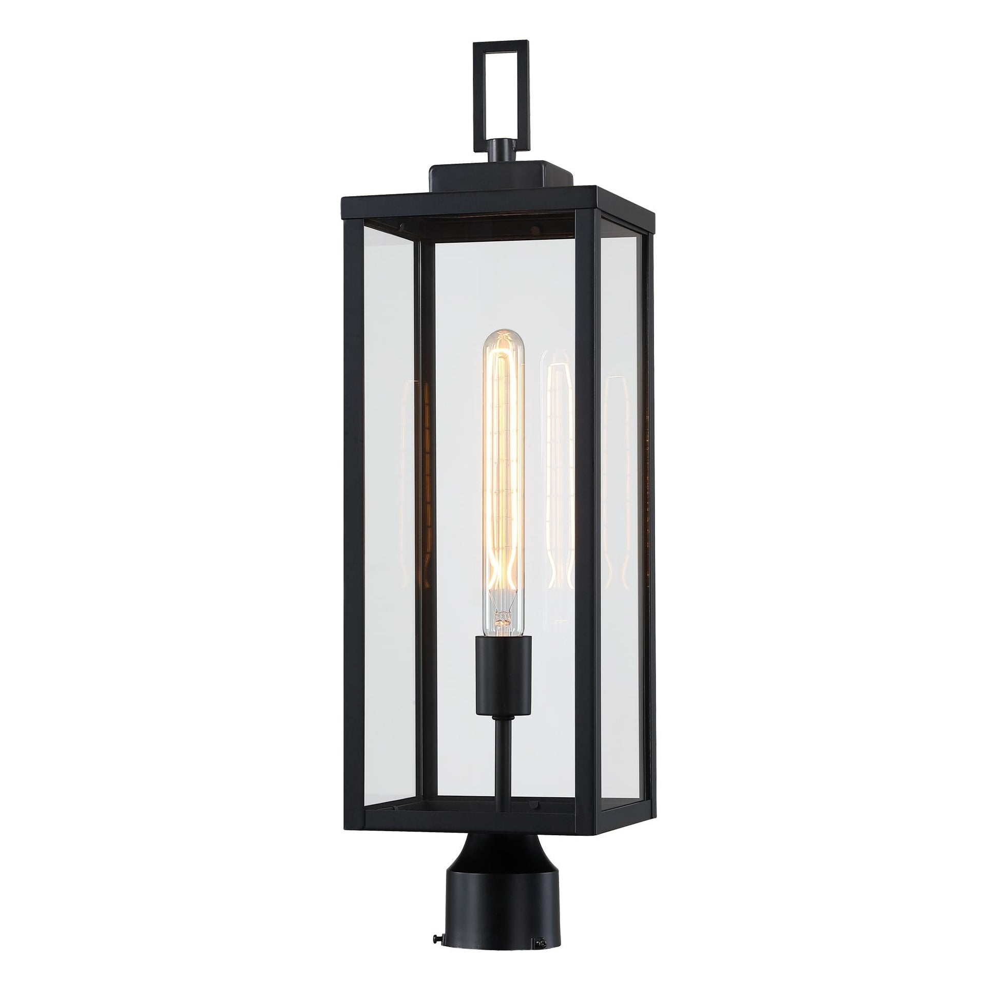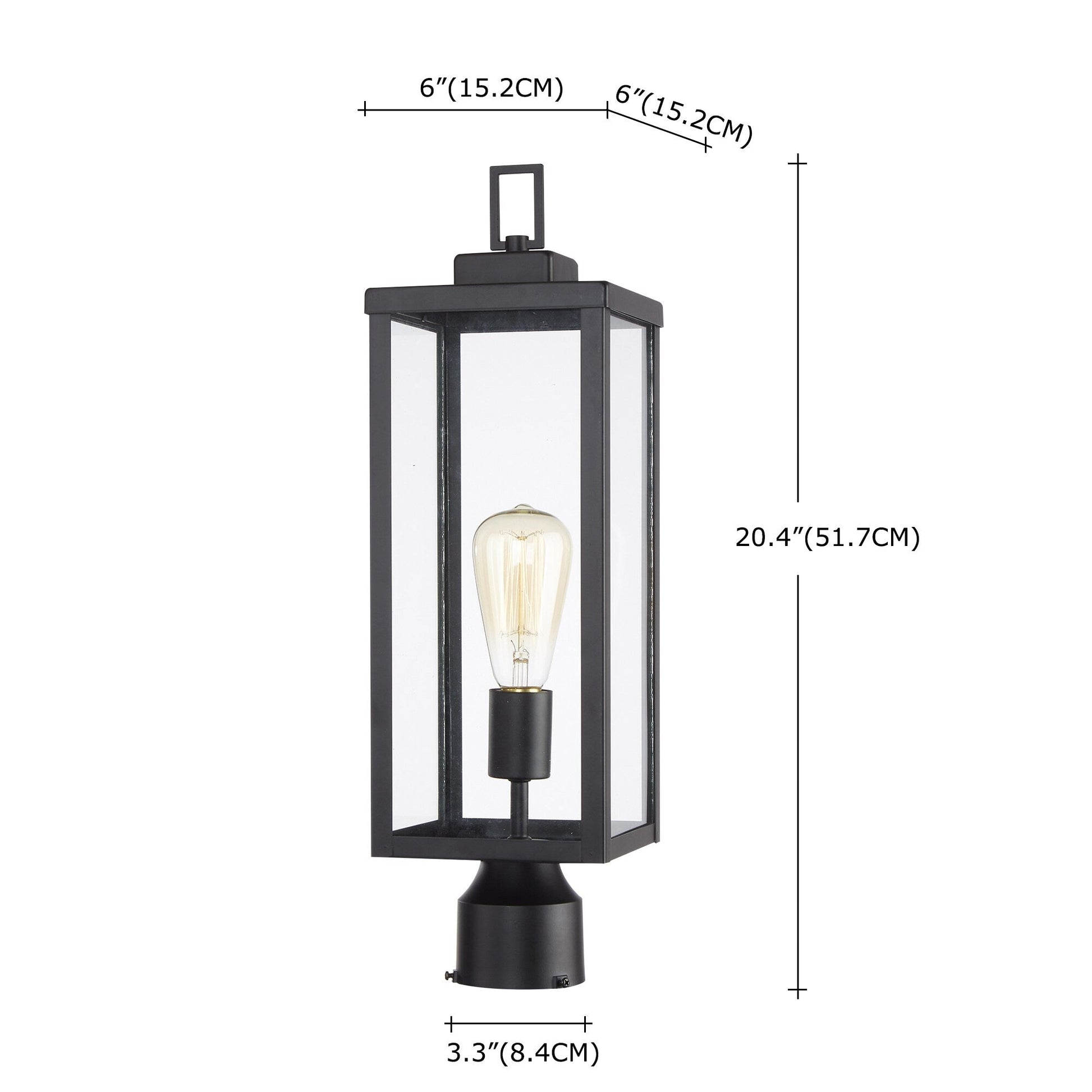 Cette magnifique lanterne moderne (montée sur pilier) illumine votre aménagement paysager et apporte une touche chaleureuse à votre entrée et à votre allée. Entièrement en métal, elle est dotée d'un abat-jour en verre transparent et d'une finition noir mat, mettant en valeur l'esthétique d'une lanterne moderne. Elle est équipée d'une ampoule à incandescence de 60 watts maximum (ampoule et mât non inclus). Idéale pour une installation en extérieur non couvert, elle est résistante aux intempéries. Fixez ce luminaire sur le mât de votre choix.