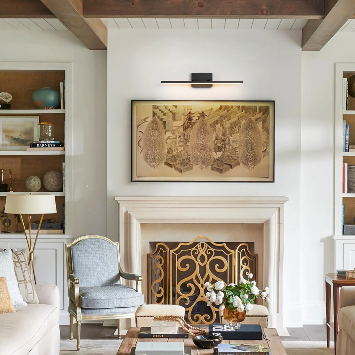 Son design minimaliste et créatif haut de gamme fait de cette applique murale LED intégrée le choix idéal pour votre salle de bain et votre miroir. Ces luminaires à bandes minimalistes de style nordique s'intègrent parfaitement à tous les styles de décoration et apportent une touche d'élégance à vos murs. Ce luminaire de salle de bain noir moderne est équipé d'un variateur intégré au cache-piton, vous permettant de régler facilement la température de couleur. La fonction rotative vous permet d'orienter la lumière selon vos préférences.