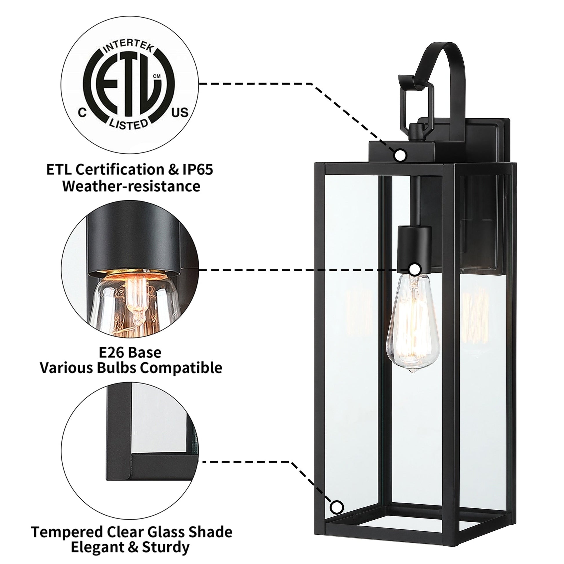 Fabriqué en alliage d'aluminium moulé sous pression robuste, ce luminaire d'extérieur offre une étanchéité optimale, des assemblages sans soudure, une protection antirouille et anticorrosion. Qu'il pleuve, qu'il neige ou qu'il fasse très chaud ou froid, cet éclairage extérieur conserve son élégance même après des années d'utilisation, sans souci de vieillissement. Contrairement aux panneaux de verre fragiles et cassants, nos appliques murales d'extérieur sont fabriquées en verre de haute qualité, robuste et durable. De plus, leur transparence diffuse une lumière douce et chaleureuse pour votre famille et crée une atmosphère agréable à l'extérieur de votre maison.