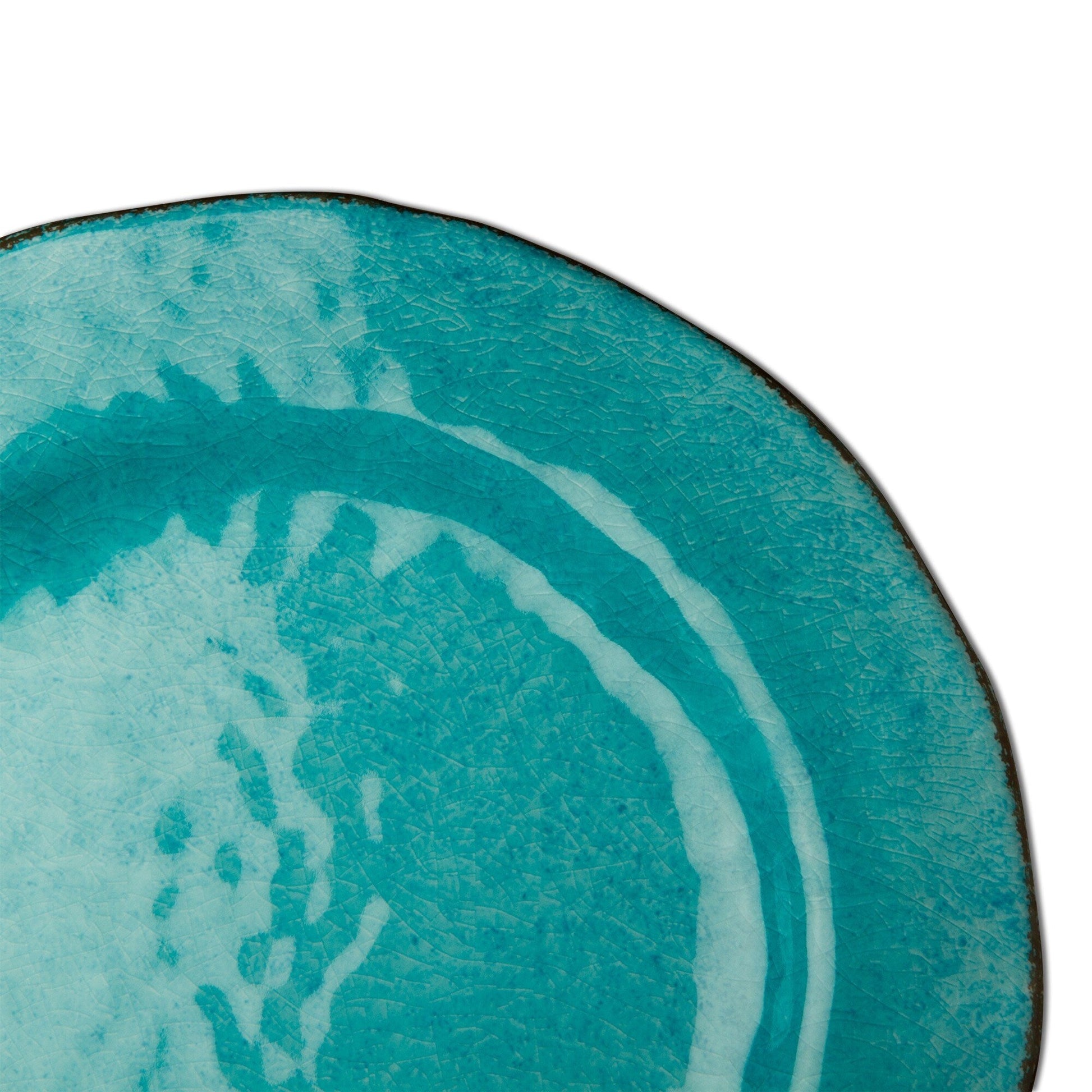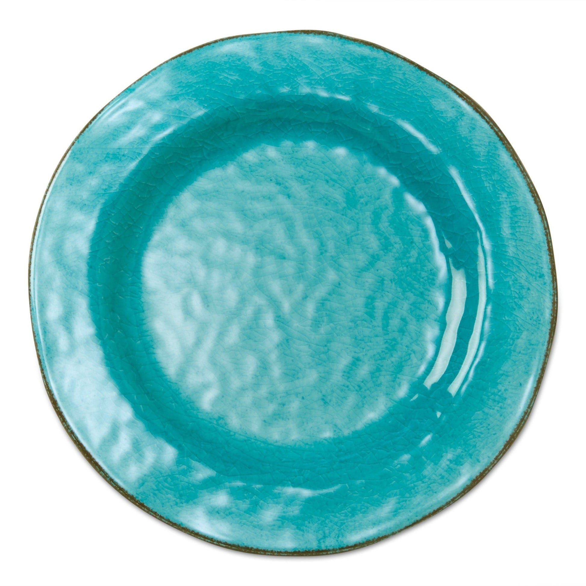 Ensemble de 4 assiettes de table en mélamine émaillée craquelée Veranda de 10,75 po, lavables au lave-vaisselle, pour l'intérieur et l'extérieur, bleu