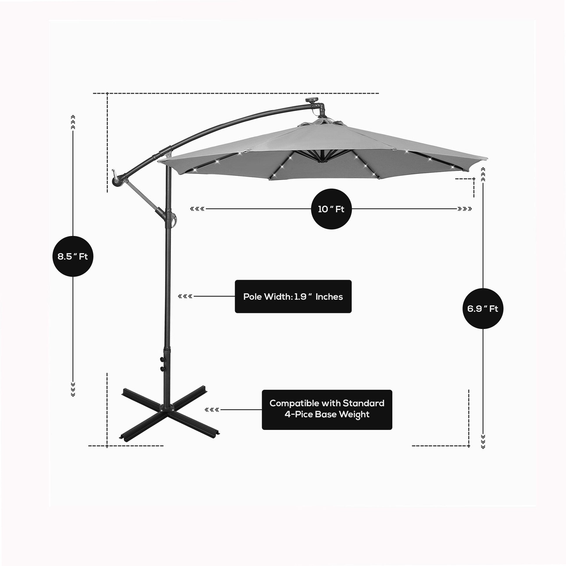 Parasol de terrasse éclairé à énergie solaire de 3 m avec pied