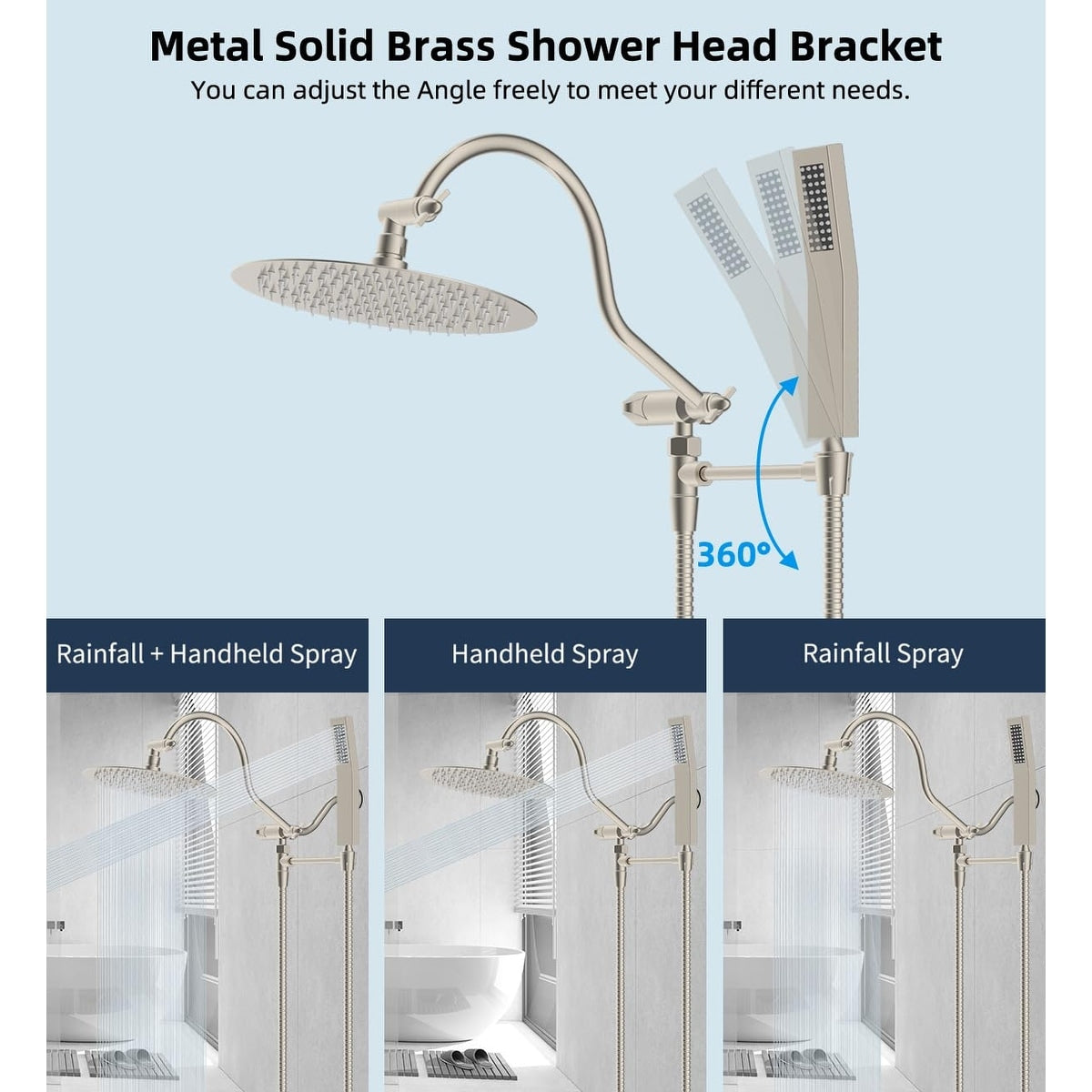 - Support et pommeau de douche en métal : Comparé à un support de pommeau de douche classique, ce support est plus long et empêche la douchette de heurter l'arrière du pommeau. D'autres modèles de pommeaux de douche sont équipés de supports plus courts, et la douchette heurte l'arrière du pommeau. Le pommeau et son support sont fabriqués en acier inoxydable et autres métaux résistants à la corrosion. Le support ajuste parfaitement l'angle de votre pommeau.