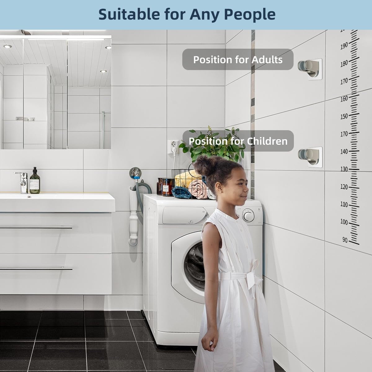 - Bras de douche extensible de 30,5 cm (12 po) : sa conception incurvée, réglable en hauteur et en angle, améliore sa capacité portante. Il permet de surélever le pommeau de douche pour un jet d'eau vertical. Comparé à une rallonge de bras de douche classique, ce bras permet de le surélever ou de l'abaisser, tout en le maintenant à l'horizontale. Malgré sa grande taille, le pommeau de douche reste toujours vertical et ne heurte pas le bras de douche, contrairement à un bras de douche droit classique.