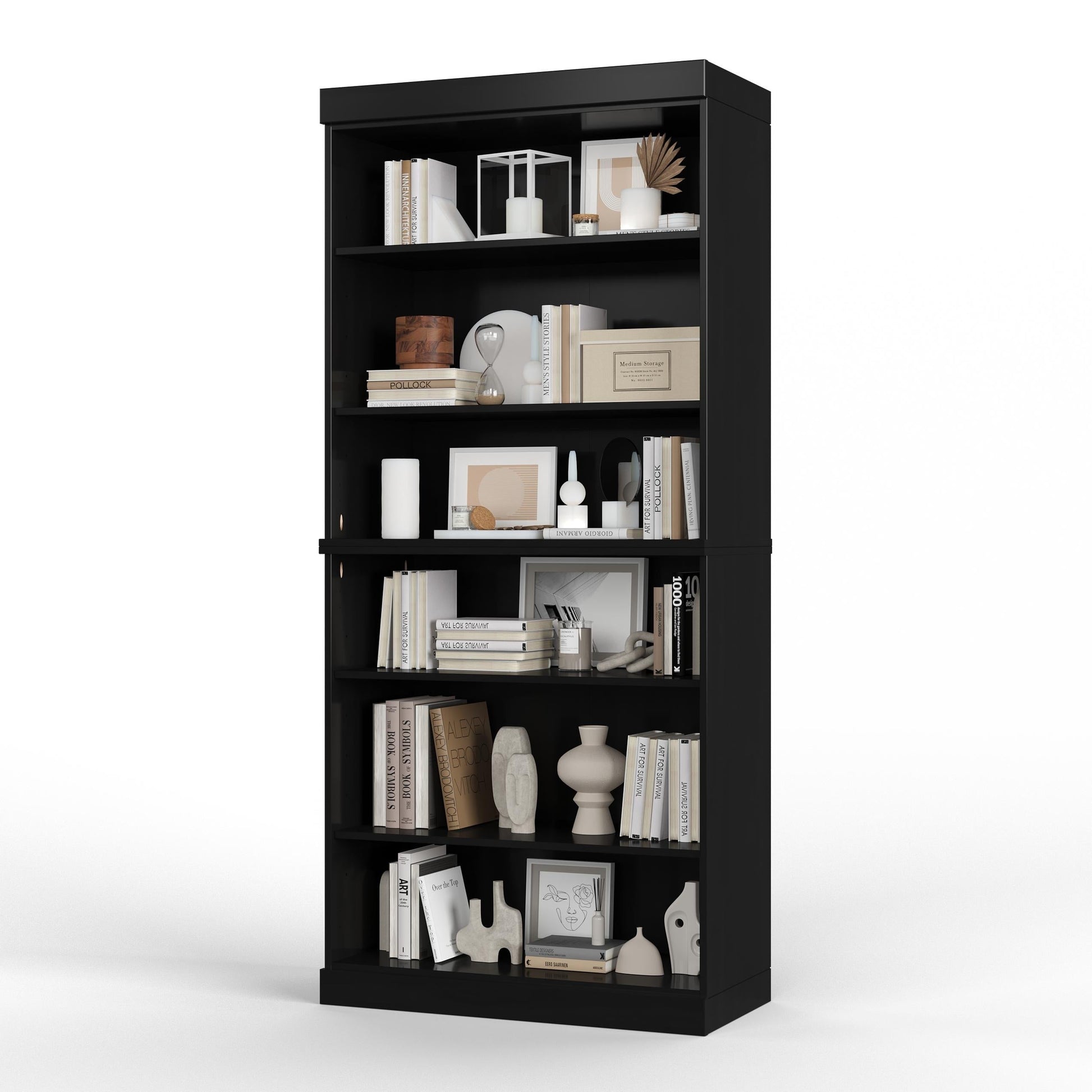 Ne vous laissez pas tromper par sa simplicité ; cette bibliothèque offre une multitude de possibilités dans son élégant cadre. Que vous préfériez la simplicité classique d'un design à 6 étagères sans portes, la sophistication de panneaux surélevés en bois massif ou l'élégance moderne de portes transparentes ou en verre dépoli, il existe un style pour tous les goûts et tous les espaces.