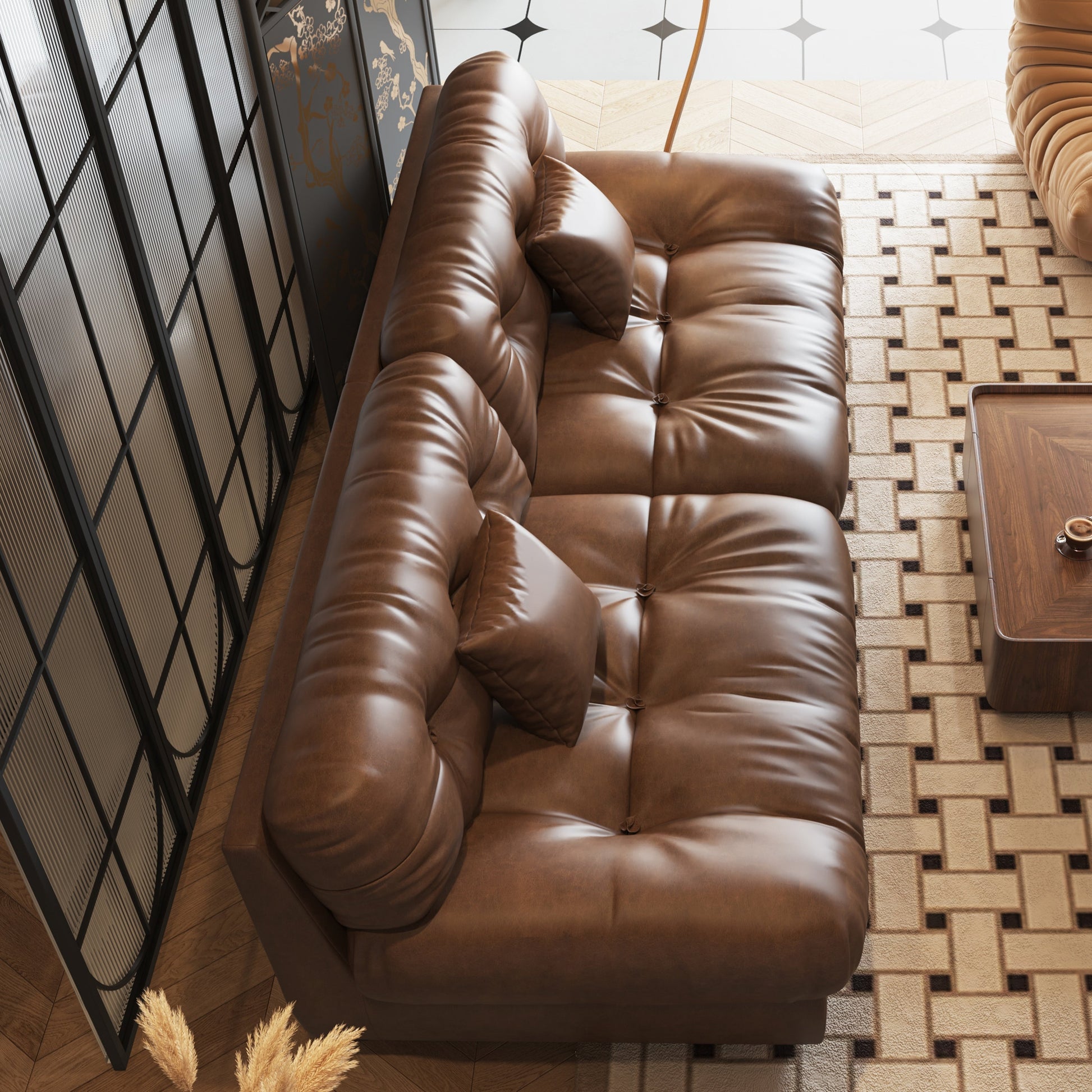 102.4 3-Seat Mid-Century Leather Feather Sofa - 110.2 x 31.9