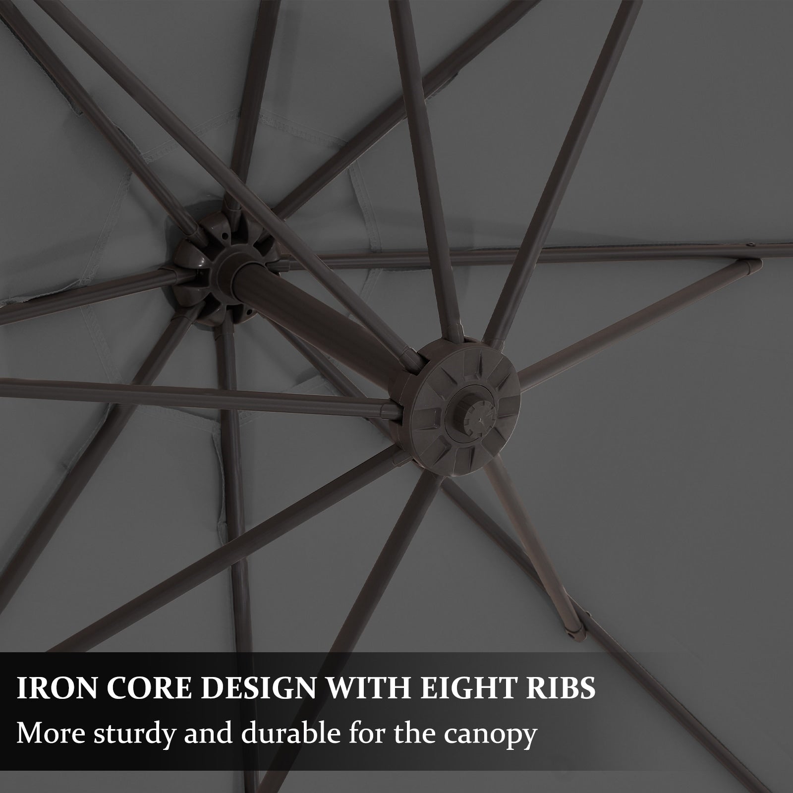 Parasol déporté suspendu à manivelle en acier de 10 pieds