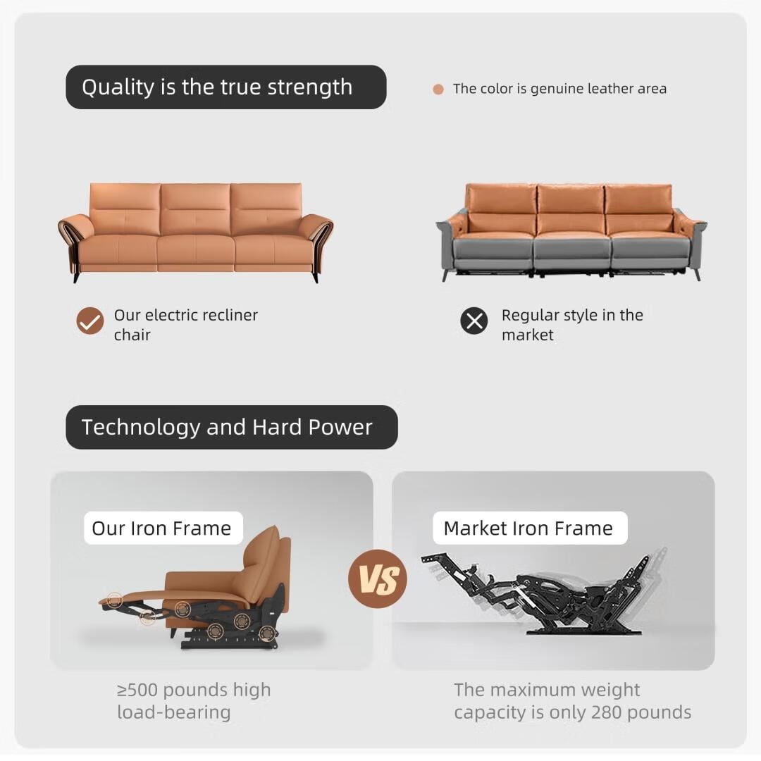🛋�?/em> Ultimate Comfort and Style: Our 112.5'' Vegan Leather Power Reclining Sofa combines luxurious style with functionality, making it a perfect fit for any modern home. With a smooth reclining mechanism powered by a convenient side button, this sofa offers personalized comfort at the push of a button. Enjoy the refined elegance of vegan leather, which is not only beautiful but also sustainable.