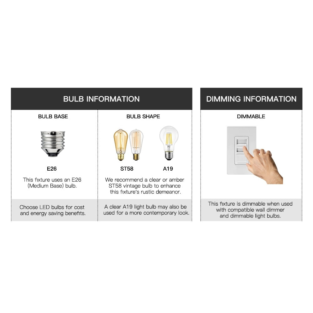 - Ampoules Edison de style vintage recommandées (ampoule non incluse)
