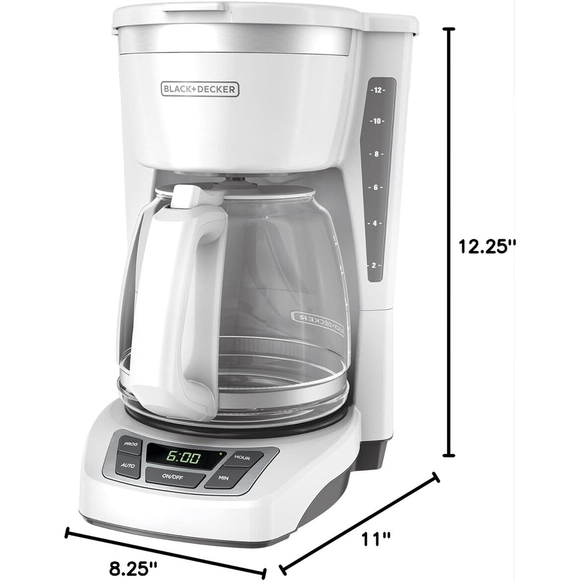 Cafetière numérique 12 tasses, programmable, filtre lavable, Sneak-A-Cup, infusion automatique, maintien de la plaque chauffante, blanche
