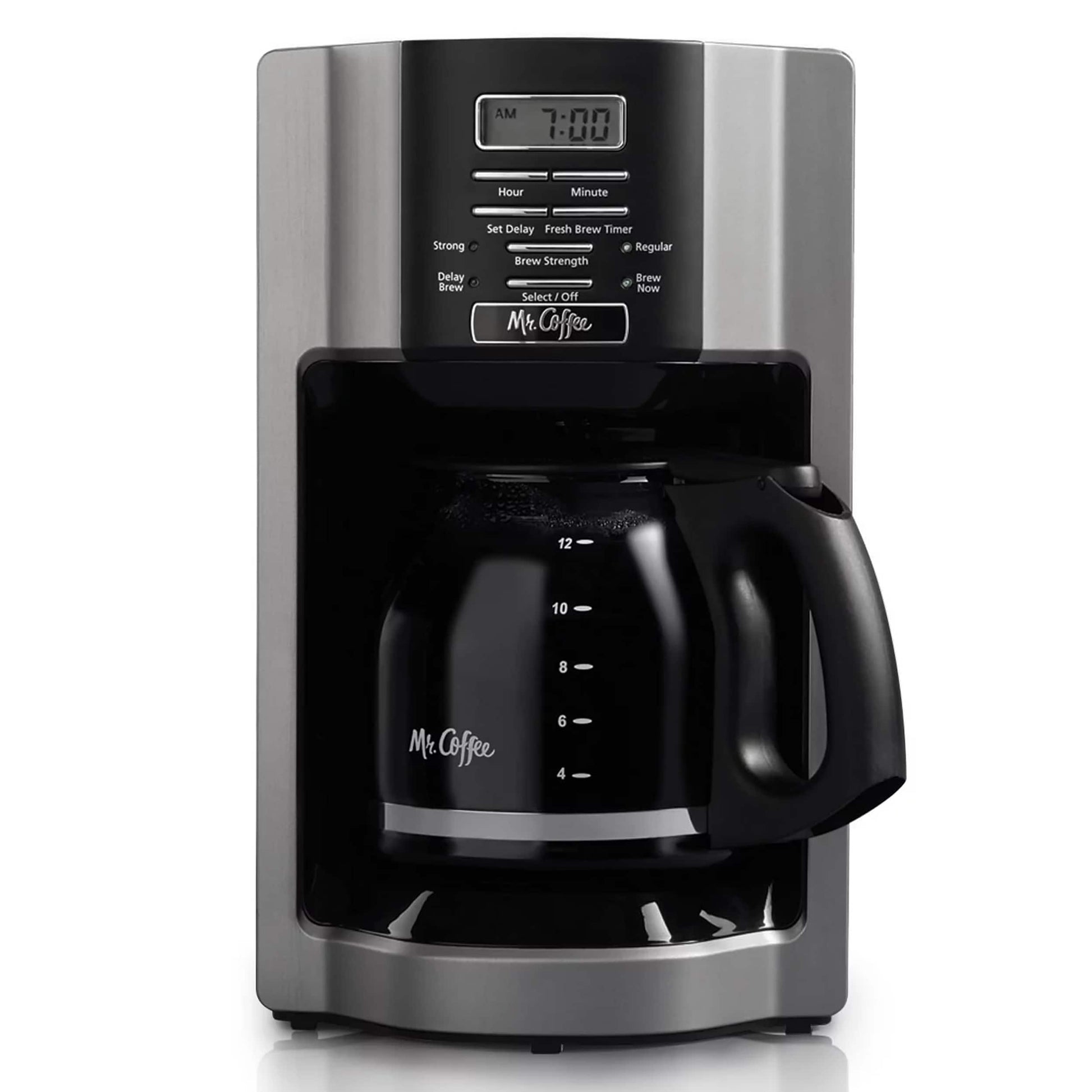 Savourez un délicieux café à tout moment avec la cafetière Mr. Coffee 12 tasses. Son design moderne s'intègre parfaitement à votre cuisine et permet de préparer un délicieux café 20 % plus rapidement grâce à la nouvelle fonction d'infusion rapide ! Le sélecteur d'intensité de café vous permet d'obtenir un arôme plus intense si vous préférez un café plus corsé. La programmation par bouton-poussoir vous permet de préparer votre café le soir pour une tasse chaude et fraîche au réveil. La minuterie fraîcheur garantit un café toujours optimal. Elle est également équipée d'une carafe en verre et d'un panier-filtre amovible pour un nettoyage facile.