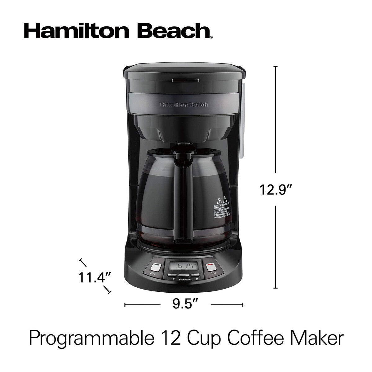 Cafetière goutte à goutte programmable 12 tasses avec 3 options d'infusion, carafe en verre, pause et versement automatiques, acier inoxydable noir (46293)