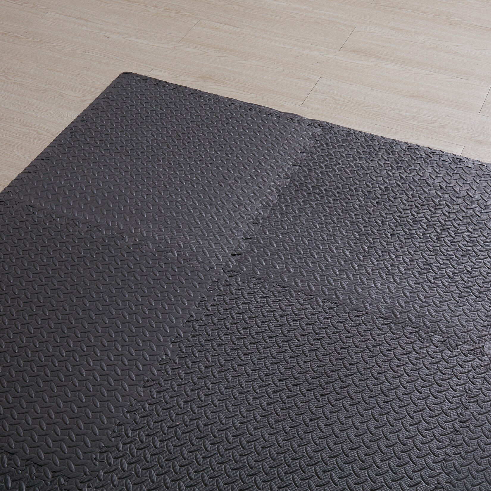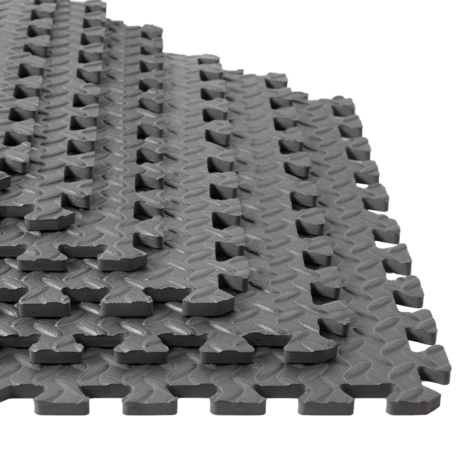 Ce tapis d'exercice est composé de dalles de mousse denses et confortables, emboîtables, qui s'assemblent en quelques minutes. Excellente durabilité et douceur au toucher. Non toxiques, imperméables, ces dalles absorbent les chocs et protègent les sols. Nettoyez-les simplement avec un chiffon humide et un détergent doux pour un résultat impeccable. Idéal pour tout type d'exercice. Embellissez n'importe quelle pièce de votre maison ou démarquez votre stand lors d'un salon professionnel avec ces magnifiques pièces de puzzle emboîtables.