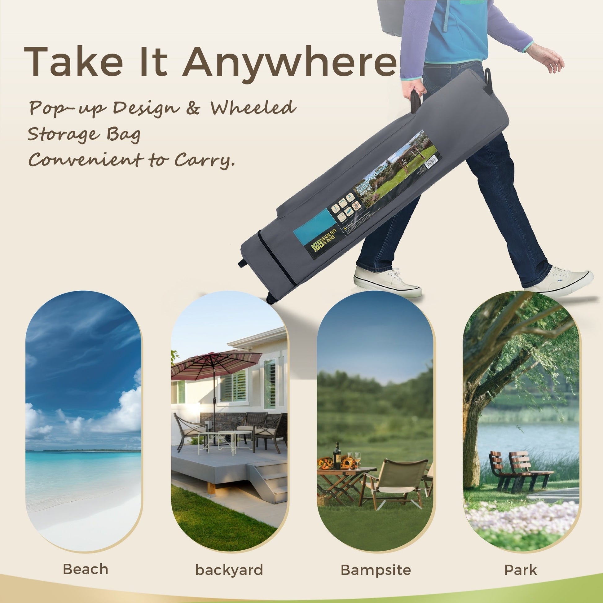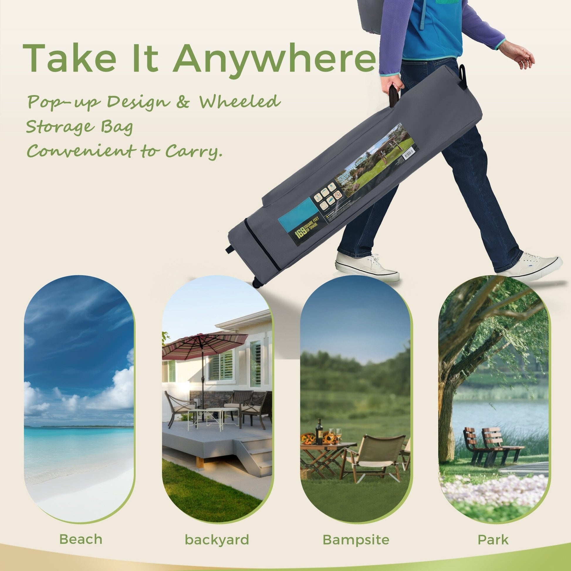 【Accessoire】 : Sac à roulettes inclus pour un transport et un rangement faciles. N'oubliez pas de stabiliser la tente avec les haubans et les piquets inclus.