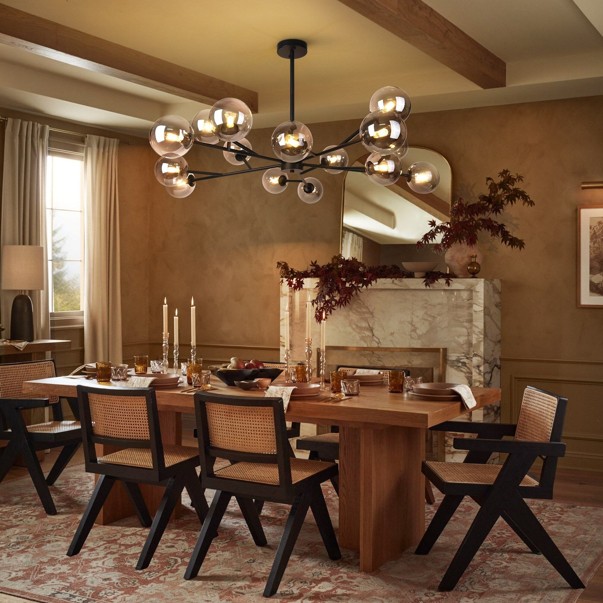 Lustre linéaire moderne à 15 lumières pour îlot de cuisine Sputnik avec branches et globes en verre