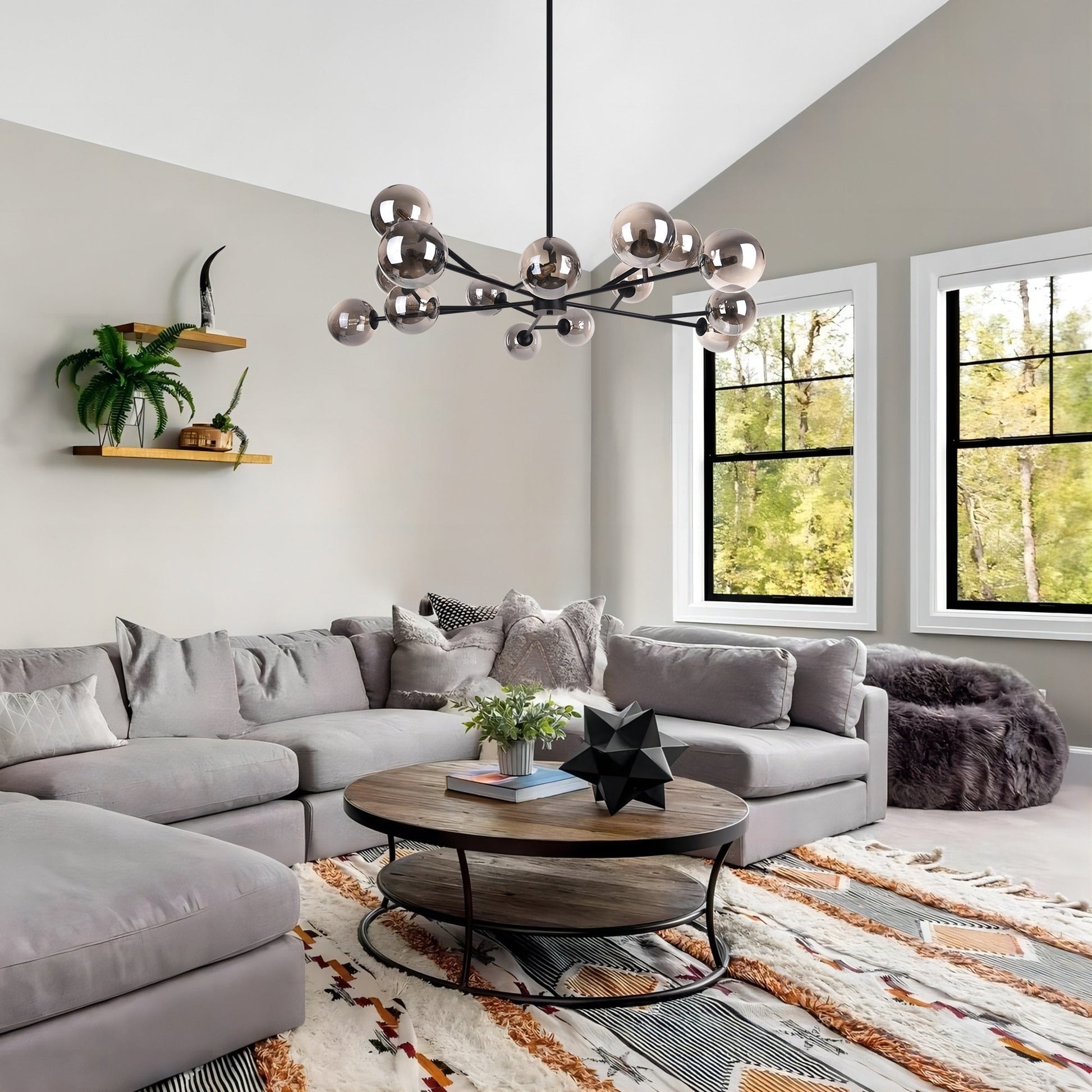 Affirmez votre style dans n'importe quelle pièce avec ce lustre en verre Sputnik, moderne et élégant. Son design à la fois unique et sophistiqué, et son abat-jour en forme de globe en verre fumé noir/ambre assure un éclairage doux et généreux. Ce lustre en forme de globe doré/noir est le choix idéal pour un éclairage aussi fonctionnel que décoratif. L'association de globes en verre et d'un cadre en tube métallique crée un effet saisissant.