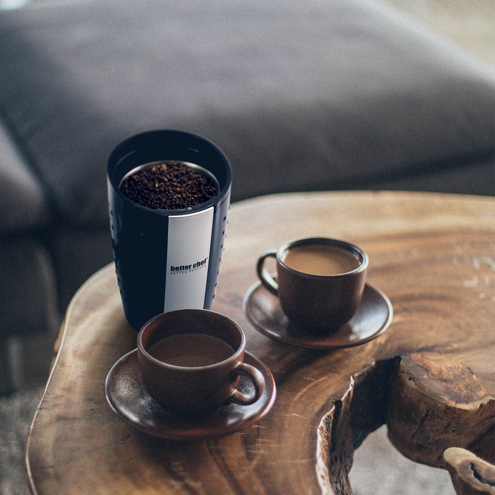 Compact et PUISSANT, le moteur de 150 watts du moulin à café Better Chef Power Blade moud non seulement le café, mais aussi les noix, les épices et bien plus encore. Que vous souhaitiez des noix grossièrement hachées pour une coupe glacée ou des grains de café moulus pour votre café du matin, avec le moulin Better Chef, la durée de fonctionnement est une simple question de temps. Grâce à sa surface texturée facile à saisir et à son fonctionnement d'une simple pression, vous pouvez maintenir l'appareil en place tandis que les lames en acier inoxydable robustes réduisent rapidement en poudre tout ce que vous souhaitez. De plus, il est doté d'un mécanisme de verrouillage de sécurité : pas de risque de projection de poussière pendant le fonctionnement. Avec une capacité de 100 g (3,5 oz), vous aurez suffisamment de mouture pour les plus grands buveurs toute la matinée. Une fois terminé, l'appareil dispose même d'un rangement pour le cordon d'alimentation intégré : rangez-le simplement dans un placard et vous n'aurez plus à vous soucier d'un cordon d'alimentation qui pende. On adore tous notre café fraîchement moulu. Personne ne veut d'une poudre de café périmée achetée en magasin et qui date d'une semaine. Alors, essayez le moulin Better Chef, ajoutez 2,5 minutes de préparation et vous obtiendrez un café frais, nourrissant et parfait pour votre petit-déjeuner ! Dimensions : 2,13 m x 1,22 m x 1,22 m, capacité : 100 ml (3,5 oz liq.) * Moteur de 150 W pour moudre du café, des noix, des épices et plus encore * Fonctionnement par simple pression avec verrouillage de sécurité * Lames en acier inoxydable robustes * Chambre de mouture en acier inoxydable de 100 g (3,5 oz liq.) * Surface texturée et facile à prendre en main * Rangement du cordon d'alimentation * Dimensions : 1,22 m x 1,22 m x 2,13 m * Poids : 68 kg (1,50 lb)