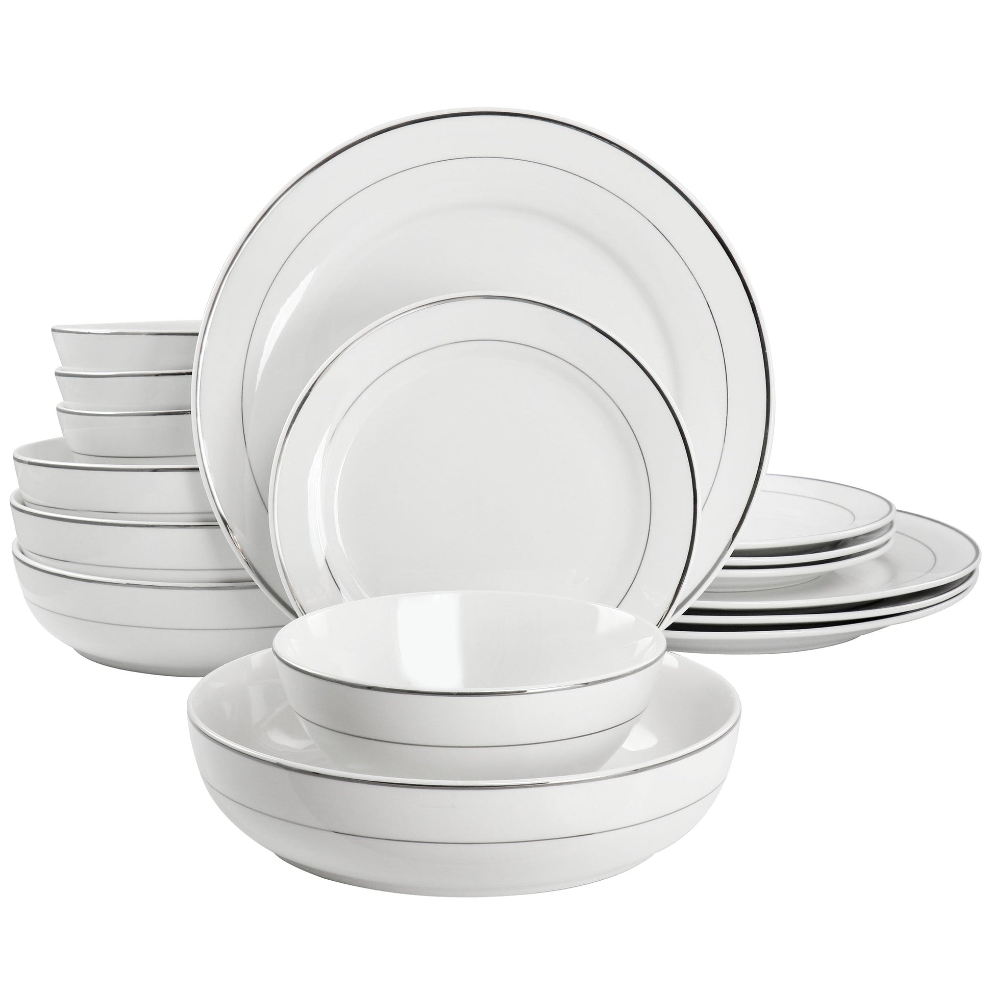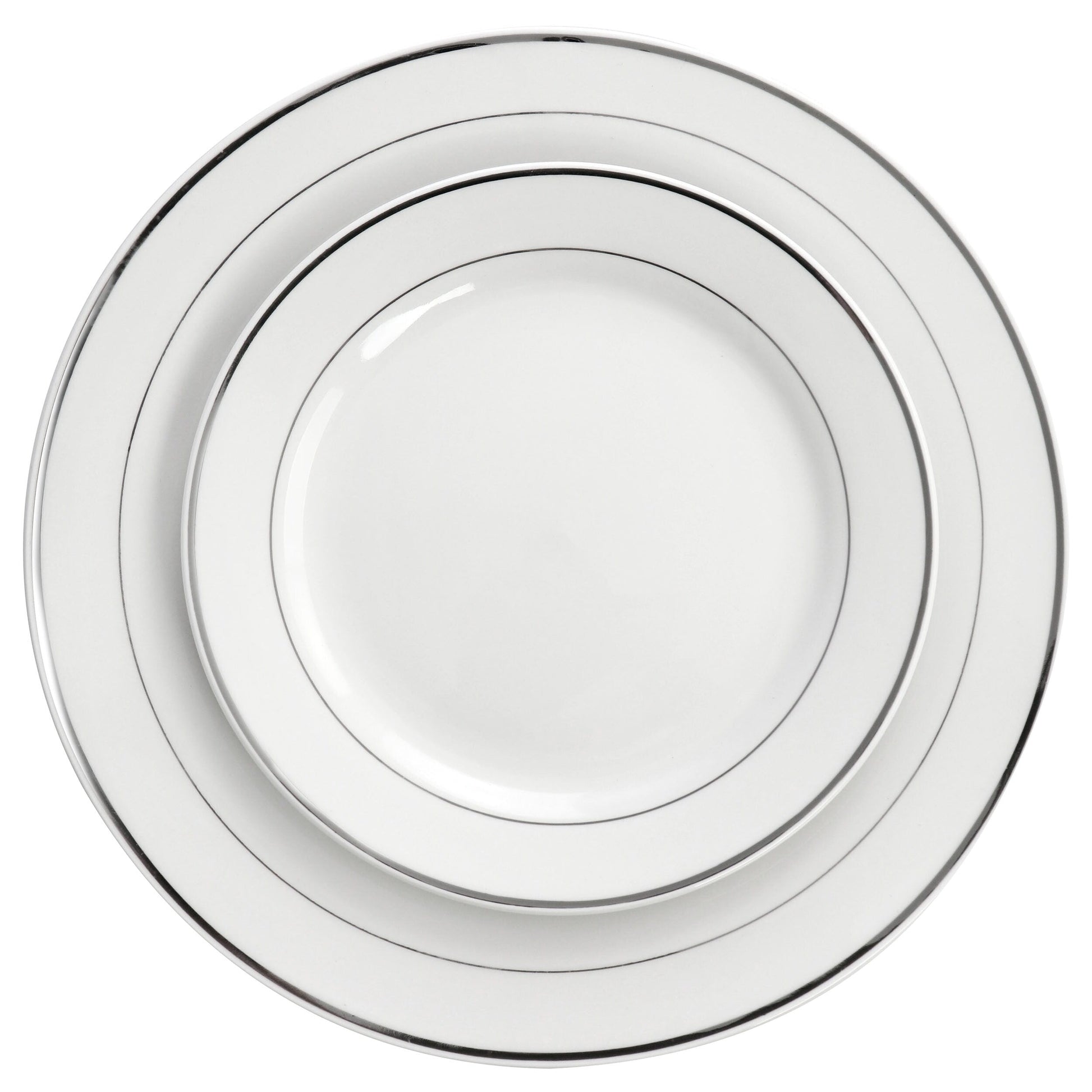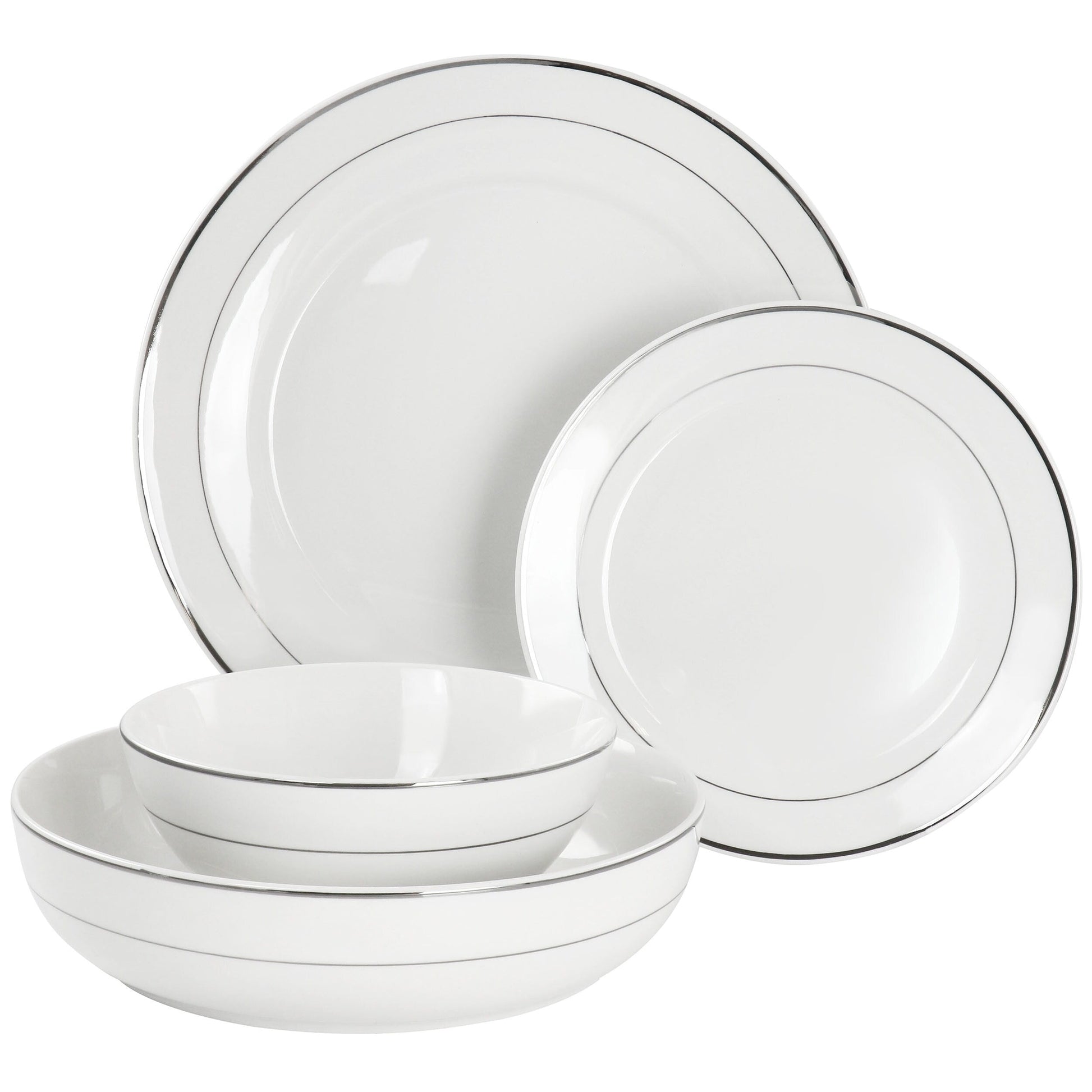 Éblouissez votre prochain dîner avec les designs éclatants de ce service de table rond en porcelaine de 16 pièces, composé de deux bols. Ces luxueux plats en porcelaine sont rehaussés d'un liseré doré qui attire le regard. Ce service double est parfait pour les soupes, les salades et les ragoûts, pour une table plus variée. Les assiettes aux accents argentés ne passent pas au micro-ondes et doivent être lavées à la main pour préserver leur finition. Offrez ce service somptueux pour vos invités spéciaux, vos dîners festifs ou pour sublimer vos repas de famille.