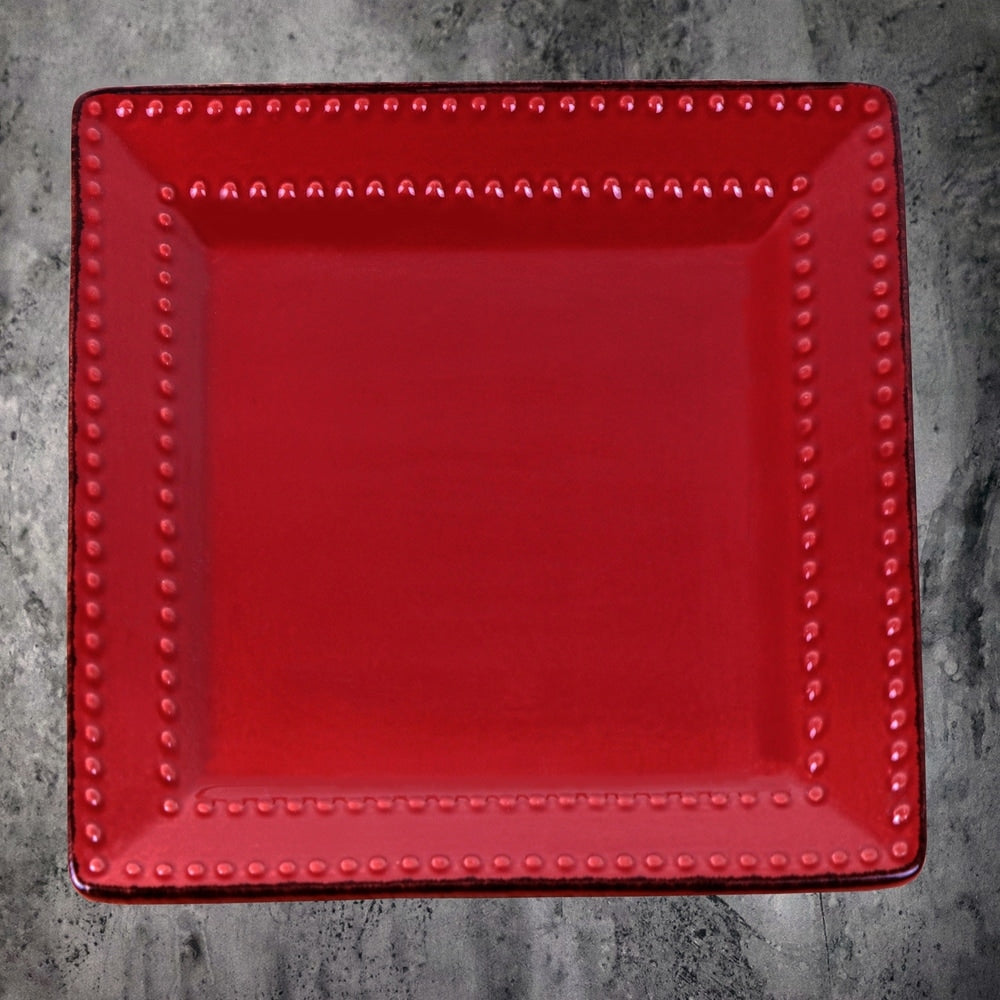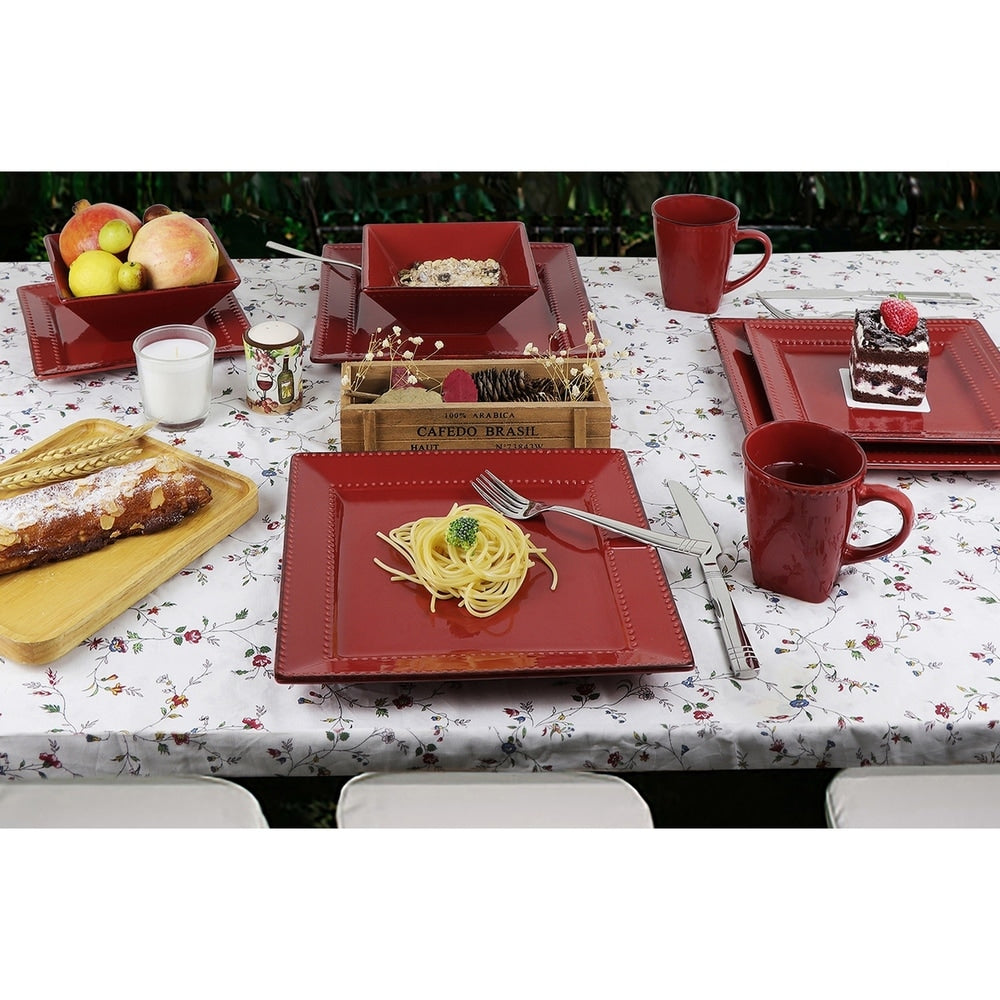 Service de table carré en grès perlé, 16 pièces, Lorren Home Trends, rouge