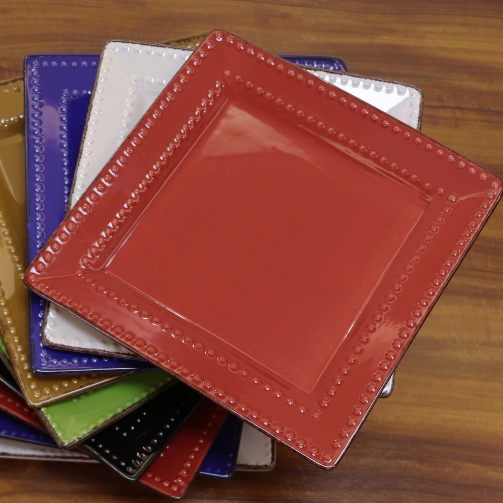 Affirmez votre style avec ce service de table carré en grès perlé de 16 pièces de Lorren Home Trends, décliné dans une nuance rouge éclatante. Sa double bordure perlée et son liseré marron lui confèrent un style moderne et élégant. Fabriqué en grès robuste et durable, ce service est parfait pour ajouter de la couleur et du style à votre table. Sa forme carrée apporte une touche de sophistication. Ce service comprend 4 assiettes plates, 4 bols à soupe, 4 assiettes à salade et 4 mugs, parfaits pour recevoir. Compatible lave-vaisselle et micro-ondes pour un nettoyage facile et pratique.