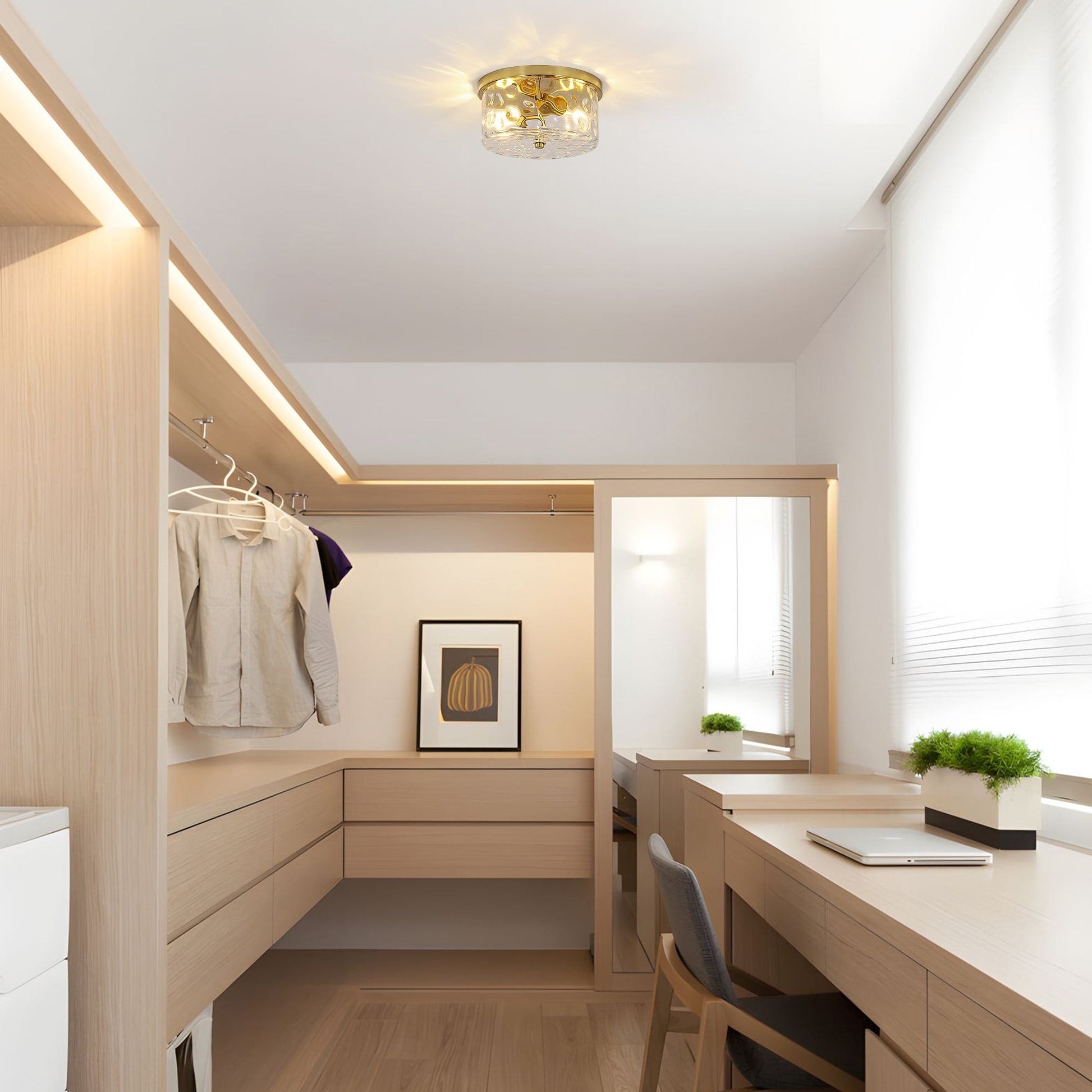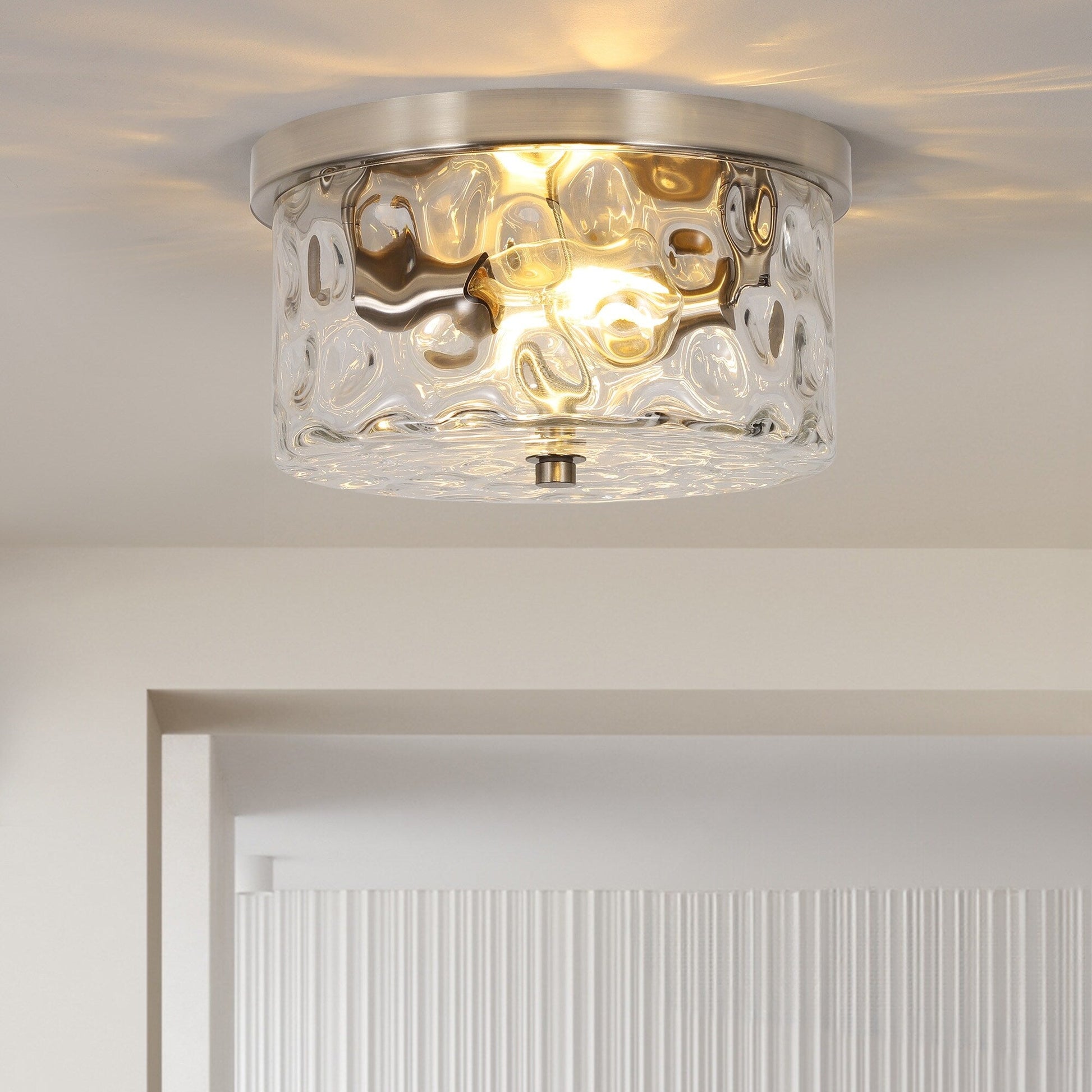 Plafonnier encastré à 2 lumières avec verre martelé transparent