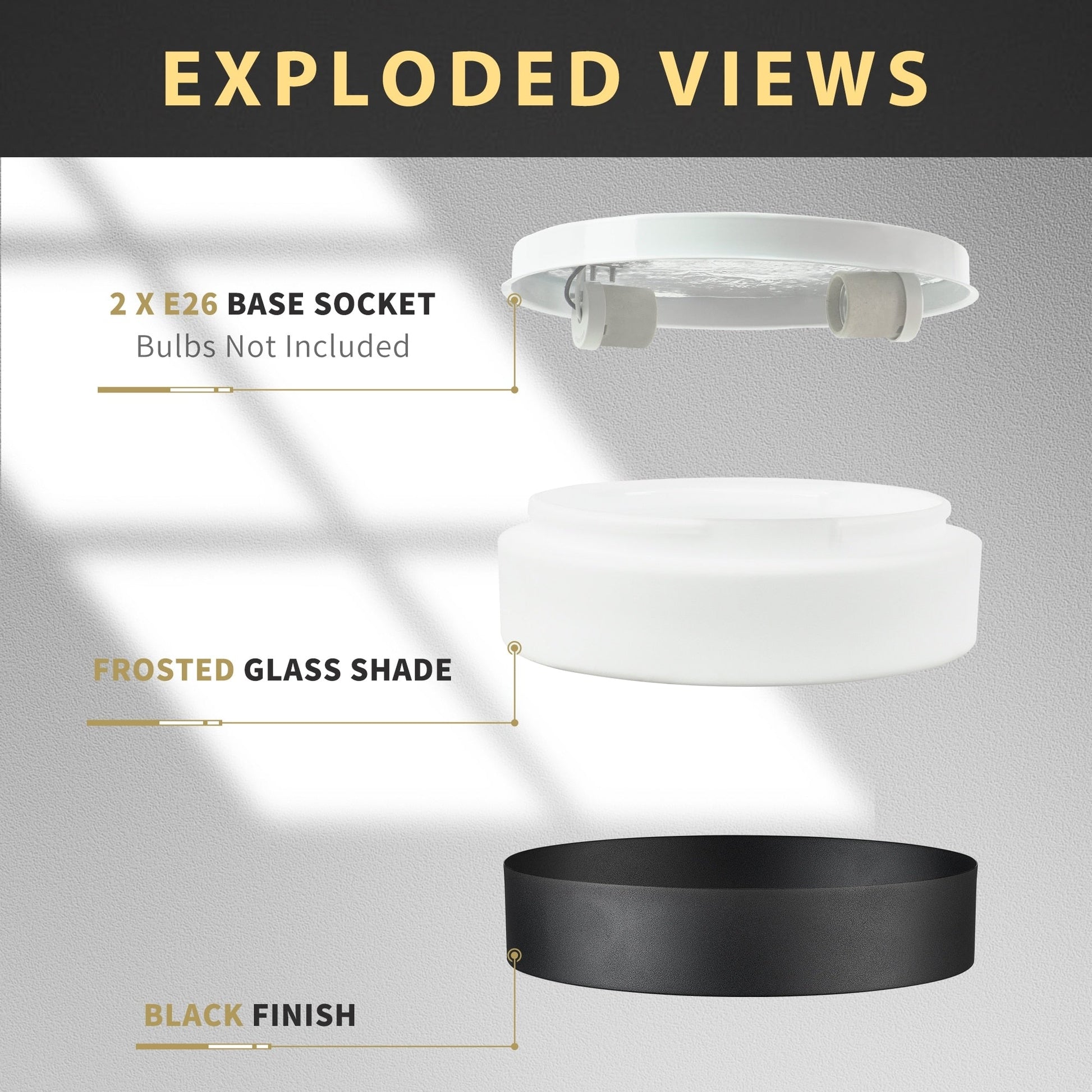 Plafonnier encastré à 2 lumières avec abat-jour en verre dépoli – 12 po L x 12 po l x 3,5 po H