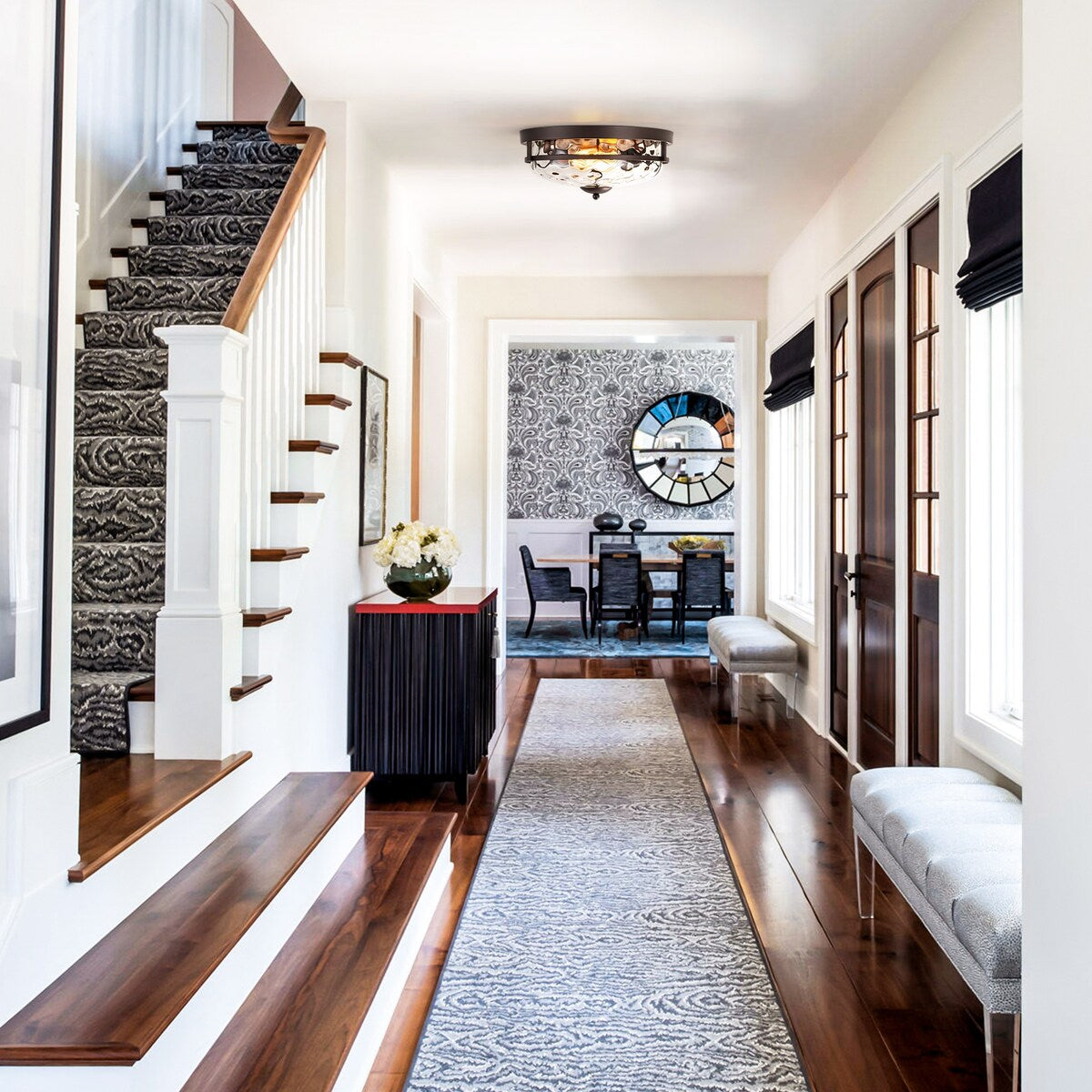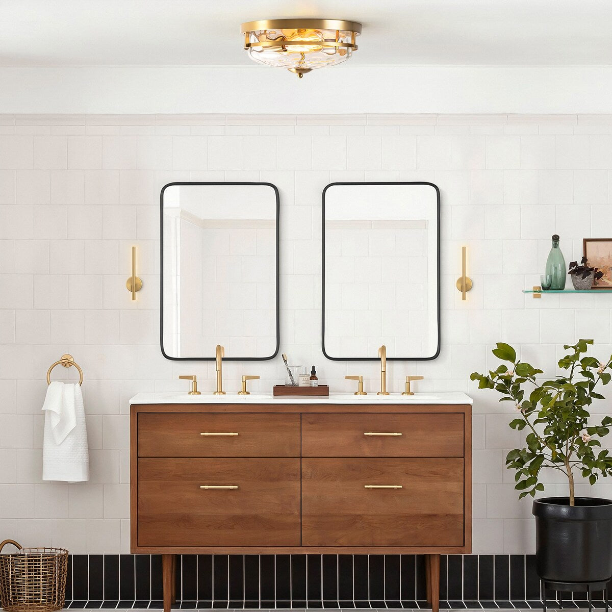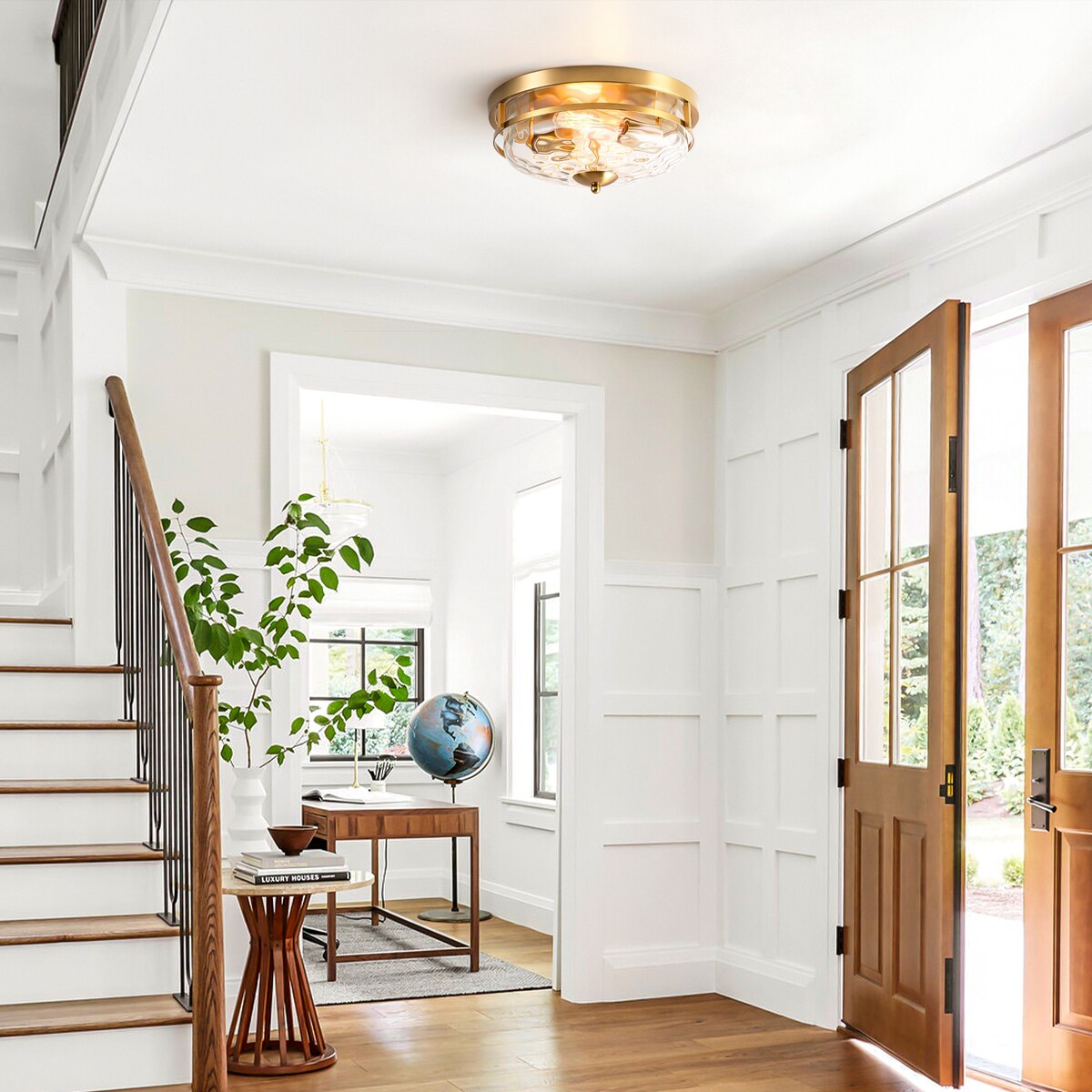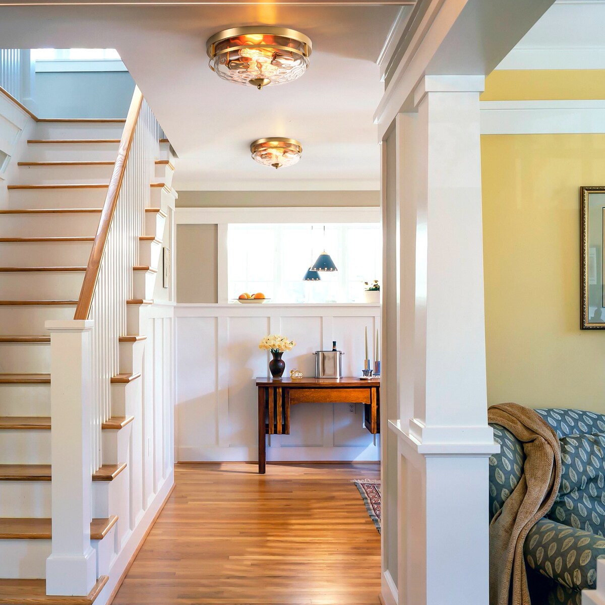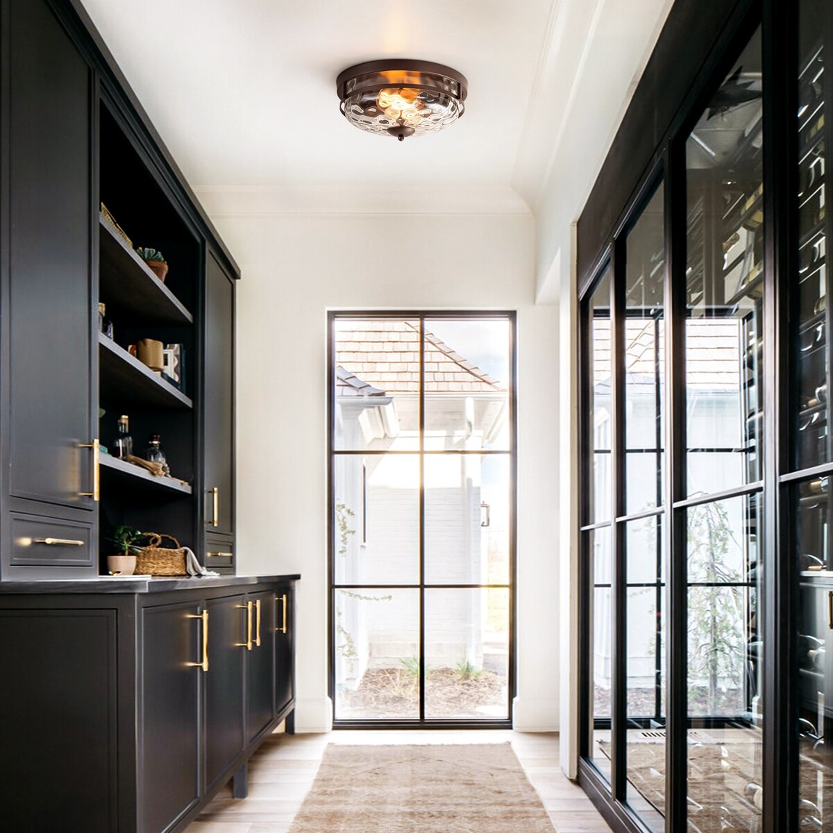 La fusion des styles vintage et rustique crée ce plafonnier encastré unique et élégant à deux lumières. Sa forme ronde et ses lignes douces lui confèrent une ambiance chaleureuse et relaxante. Le laiton vieilli et le bronze huilé s'associent à un verre transparent ondulé, simple et épuré, qui incarne la tendance du design industriel et s'harmonise parfaitement avec le style moderne. Ce plafonnier encastré à deux lumières est idéal pour votre îlot de cuisine, salon, chambre, salle à manger, chambre d'enfant, véranda, couloir, etc. Il peut également être installé dans des espaces commerciaux : hôtel, café, club, bar, etc.