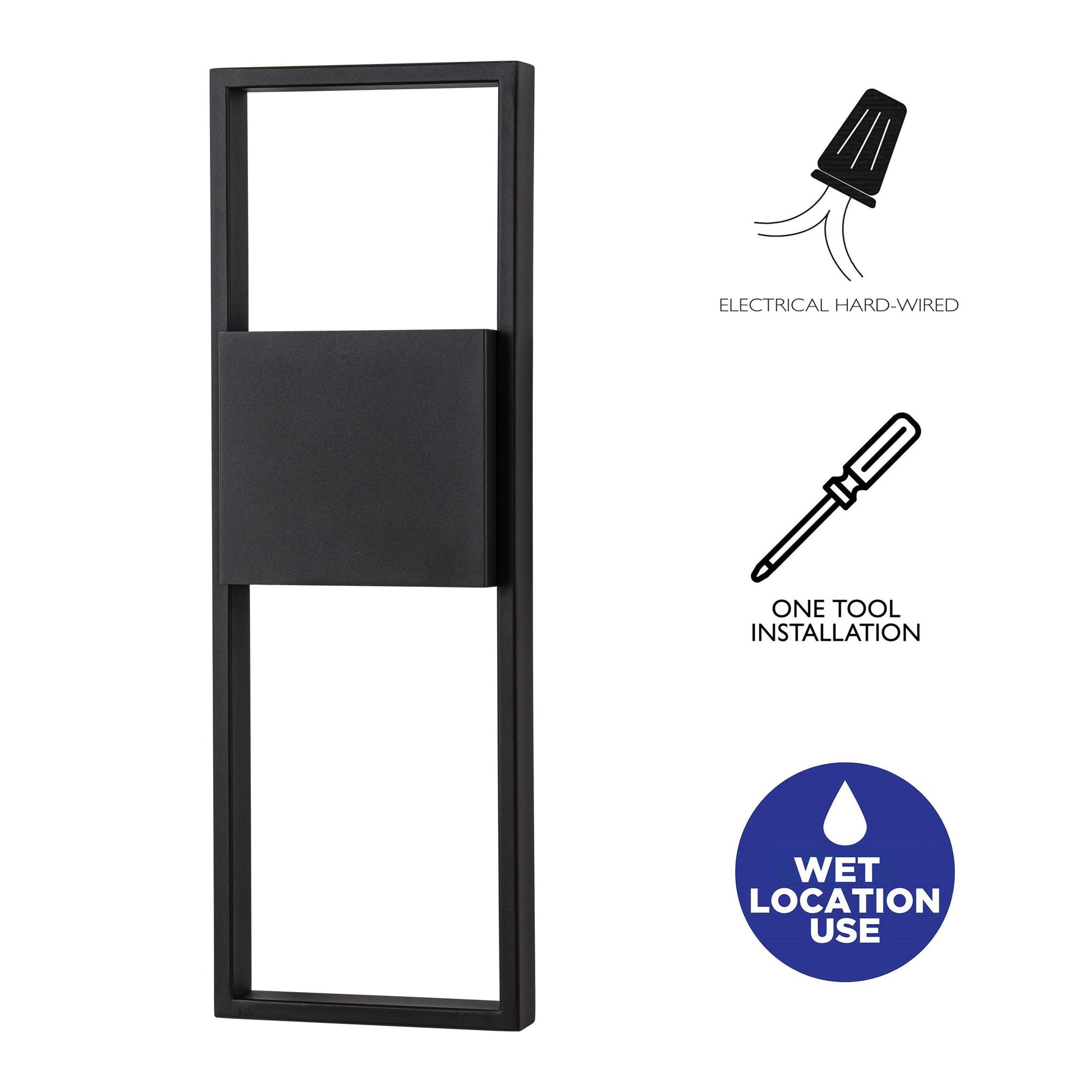 Cette applique murale d'extérieur illumine votre porche ou votre terrasse avec une esthétique ludique et moderne. Fabriquée en métal, elle arbore une finition noir mat résistante aux intempéries. Elle est dotée d'un cadre rectangulaire ouvert et d'une applique rectangulaire en verre dépoli qui diffuse harmonieusement la lumière vers le haut et vers le bas. Intégrée à un module LED basse consommation, elle offre une puissance d'éclairage de 2000 lumens. Conçue pour les endroits humides, cette applique est idéale pour l'extérieur comme pour l'intérieur.