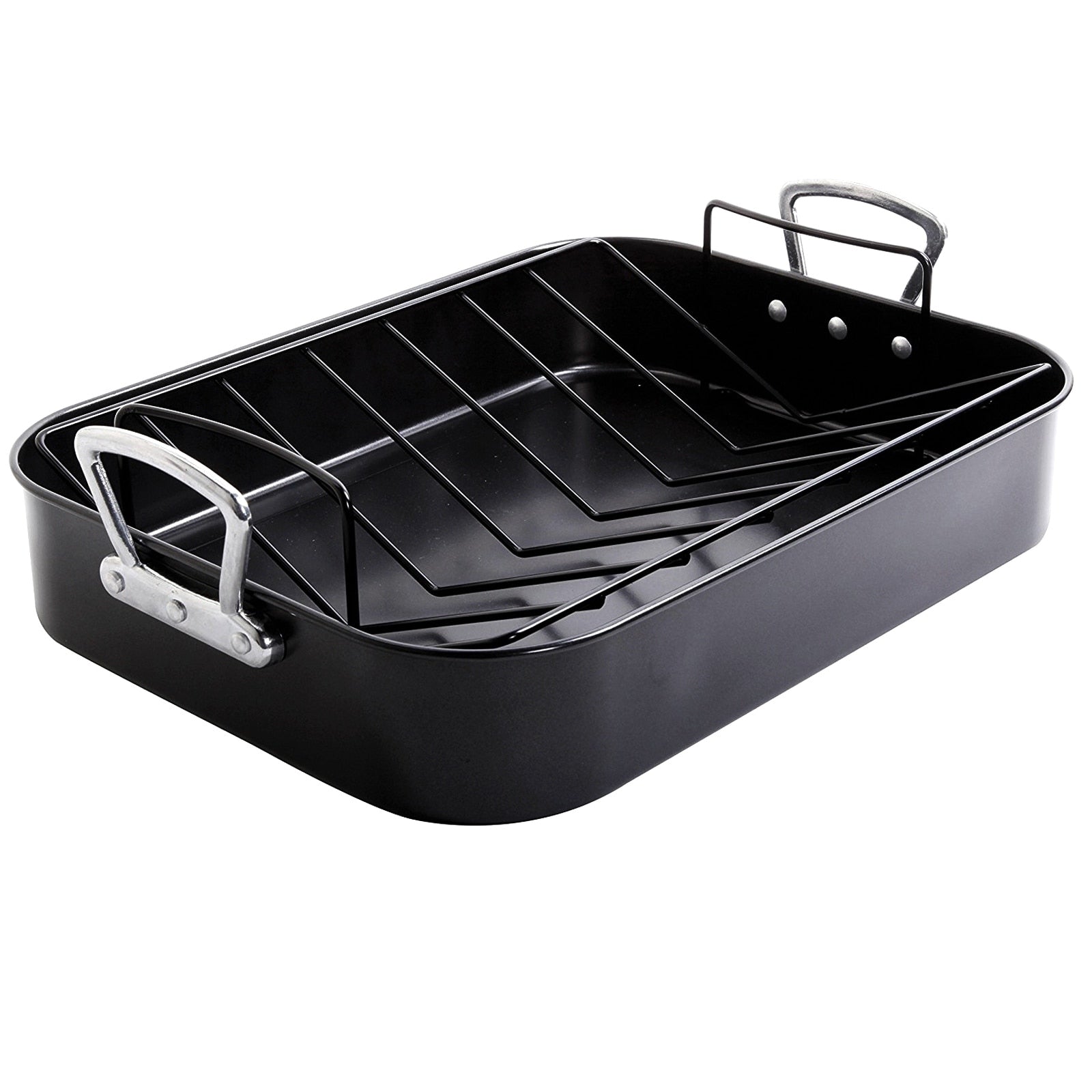 Cet ensemble comprend une rôtissoire à dinde de 41,9 cm avec grille métallique. L'intérieur antiadhésif Xylan facilite le nettoyage. Ses élégantes poignées françaises vous donneront l'impression d'être un chef professionnel. Sa construction en acier au carbone lui confère solidité et durabilité. Lavage à la main uniquement. Dimensions : 41,9 x 37,5 x 1,3 cm (1,3 kg). Lavage à la main uniquement.