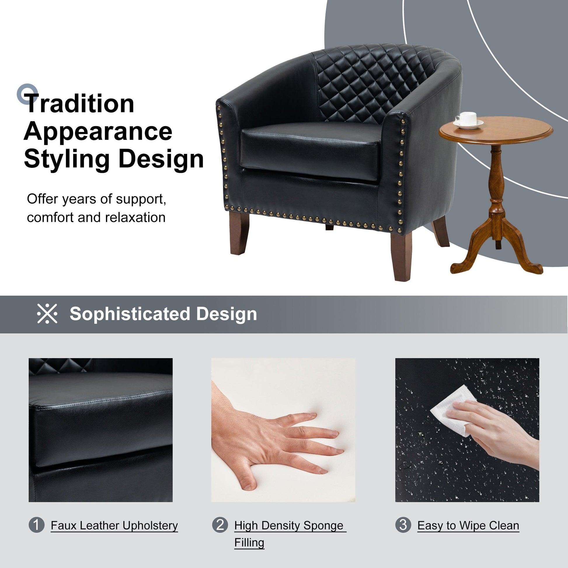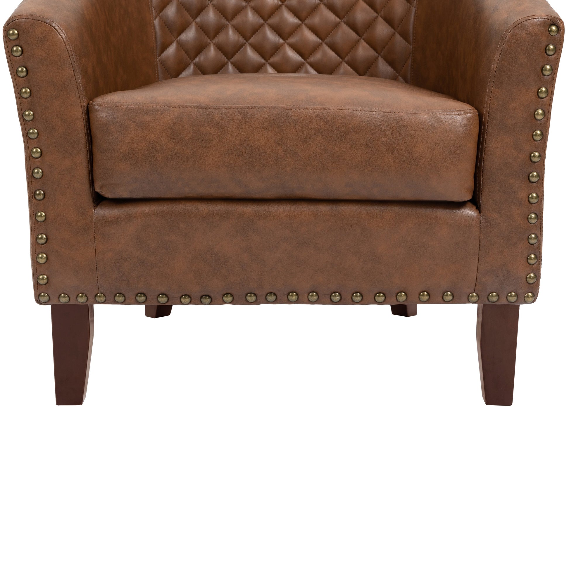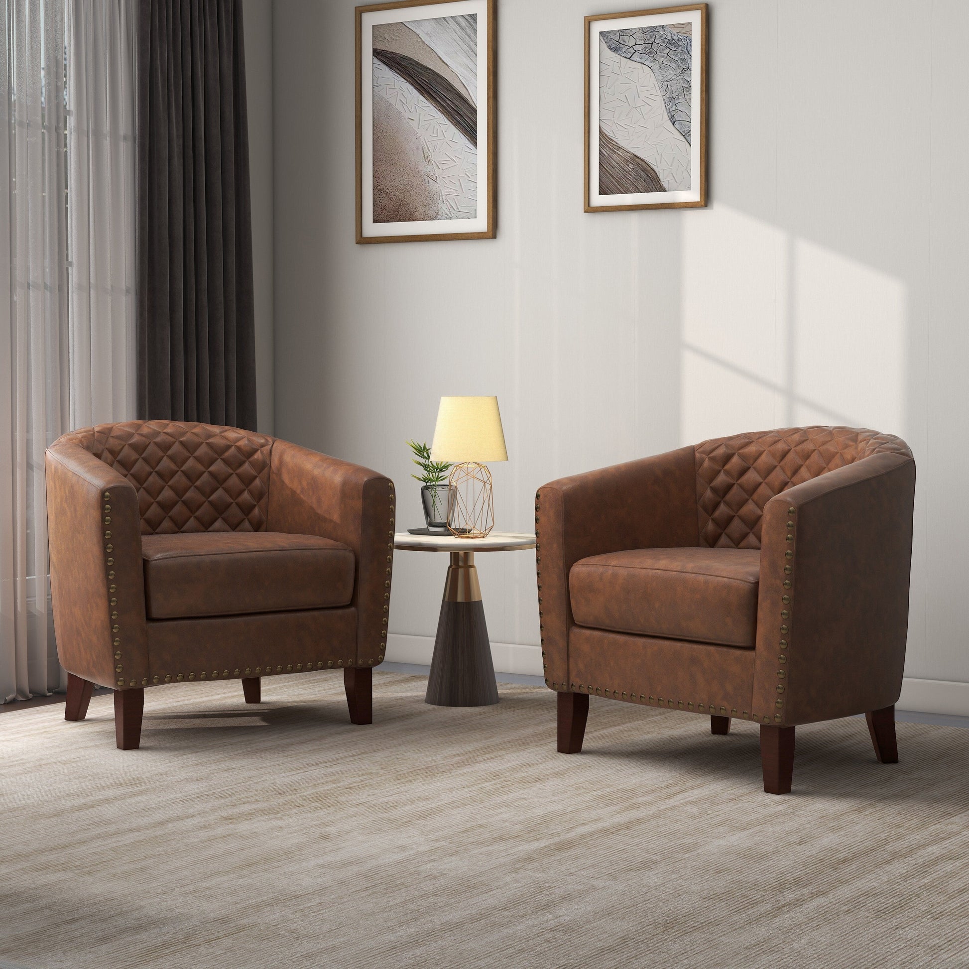 Lot de 2 chaises d'appoint tonneau en cuir vegan de 29 W avec garniture cloutée