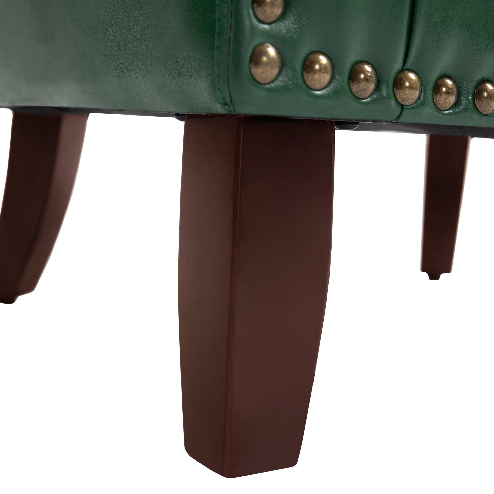 - Design tonneau pour un espace modulable ou un coin. Finition cloutée en noir et marron. Pieds en bois noir qui soulignent la beauté intemporelle de ce meuble.
