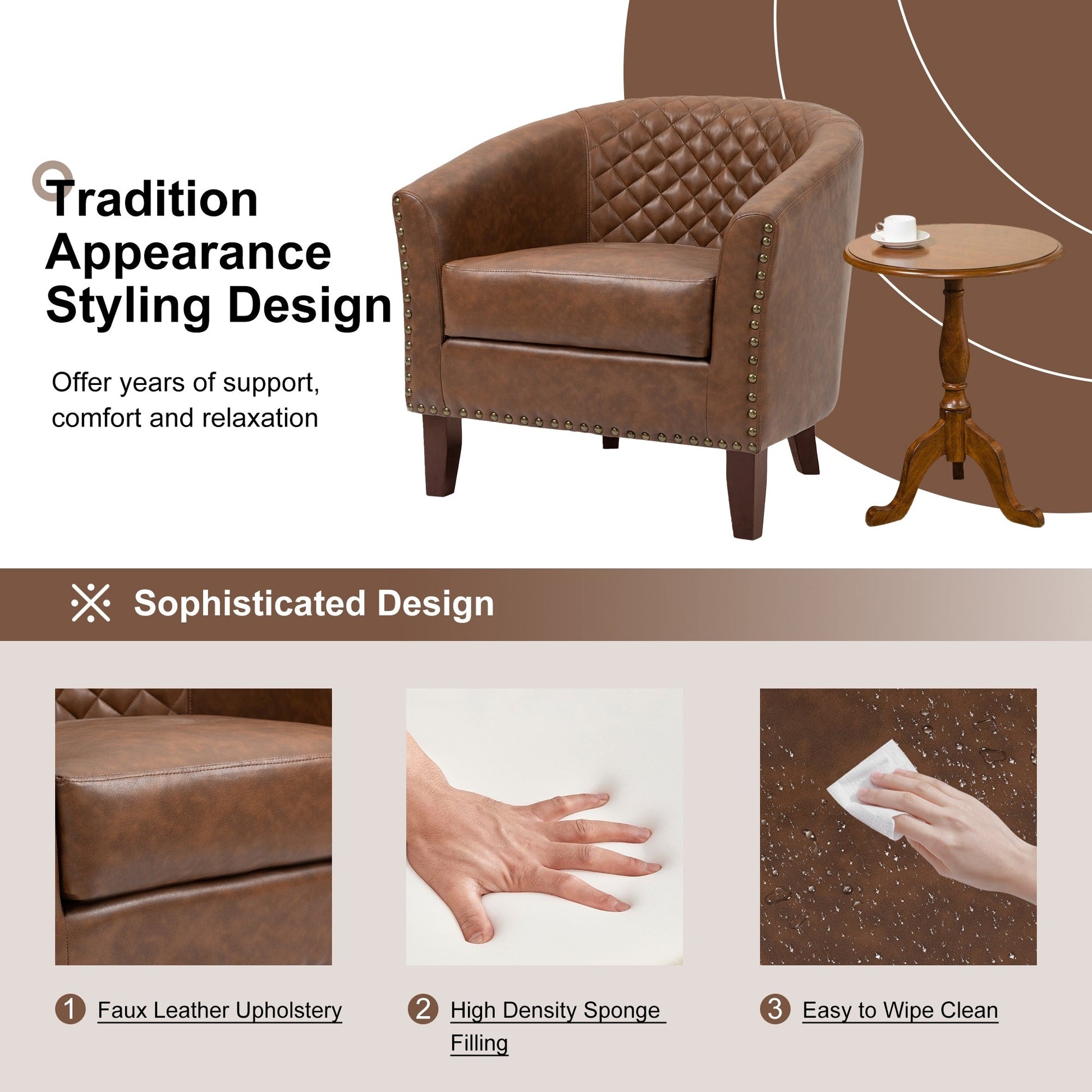 Ajoutez une touche de style et de texture à n'importe quel espace de votre maison avec ce fauteuil d'appoint polyvalent. Idéal pour le salon, la chambre, le bureau ou un coin détente, il peut même servir de chaise de bureau élégante pour un soutien optimal tout au long de la journée. Doté de bords incurvés, d'un rembourrage en mousse moelleuse et d'un revêtement en similicuir haut de gamme, il allie détente et élégance. Son dossier capitonné apporte une touche raffinée, tandis que ses accoudoirs robustes offrent un soutien et une sécurité optimaux. Un ajout élégant et fonctionnel à votre intérieur.