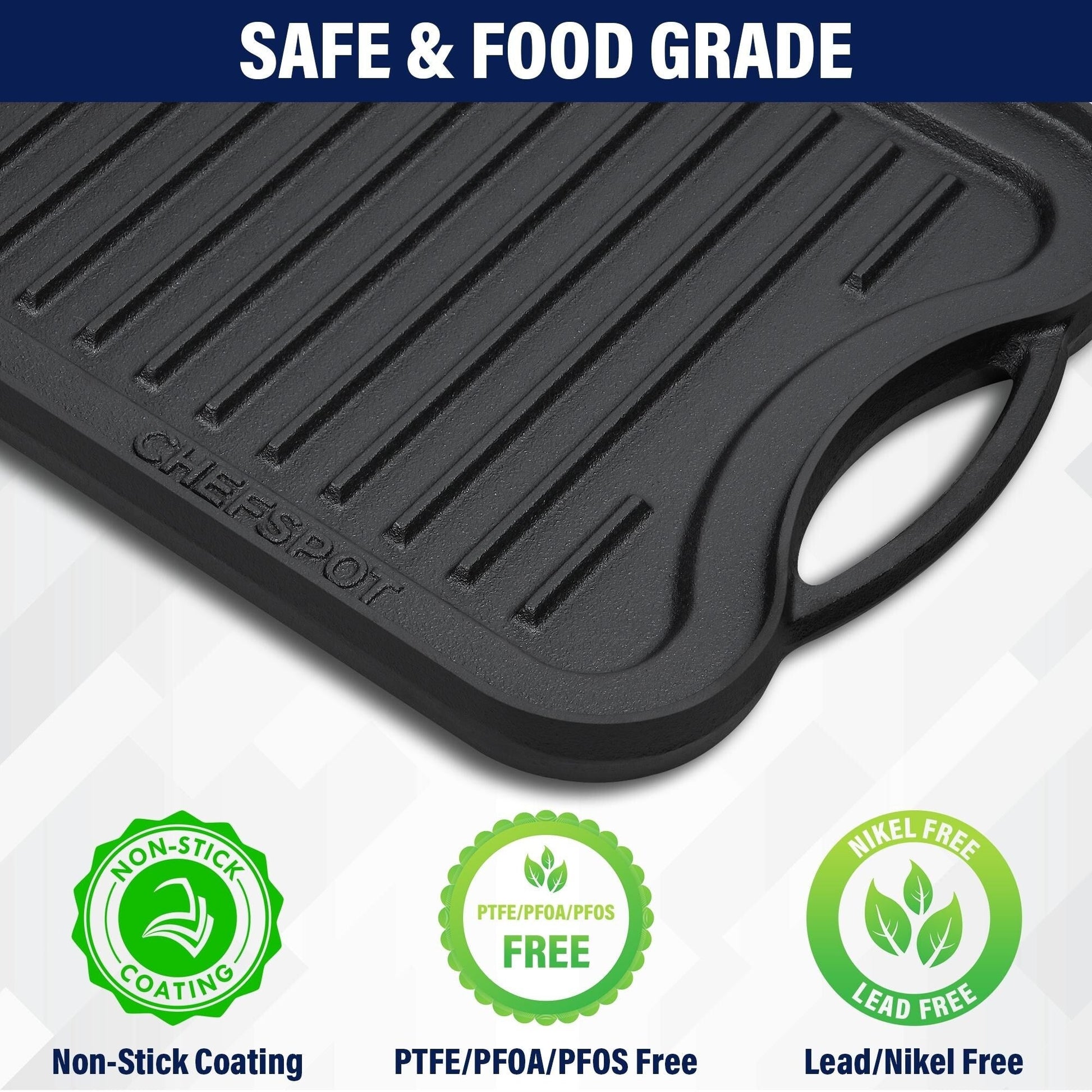 Améliorez vos prouesses culinaires avec la plaque de cuisson réversible CHEFSSPOT en fonte, un indispensable de la cuisine conçu pour sublimer votre expérience culinaire avec des résultats constants et exceptionnels. Fabriquée en fonte de haute qualité, cette plaque de cuisson double brûleur bénéficie d'une finition haut de gamme qui non seulement prévient la rouille, mais offre également une antiadhérence naturelle, garantissant une durabilité accrue même en utilisation fréquente, sans compromettre les performances. La plaque double face élimine les points chauds et les irrégularités de cuisson, offrant une répartition homogène de la chaleur pour des plats parfaitement cuits à chaque fois. Que vous grilliez du poisson ou de la viande sur la face rainurée, en laissant égoutter le jus, ou que vous prépariez des œufs et des crêpes sur la face plate, cette plaque de cuisson offre une polyvalence optimale. Sa conception ergonomique comprend des poignées ergonomiques pour une transition fluide de la cuisinière à la table. Compatible avec les plaques de cuisson, les fours et les flammes nues, elle vous permet d'explorer différentes techniques de cuisson. Le nettoyage est un jeu d'enfant : un simple coup d'éponge après chaque utilisation, garantissant des années de performance fiable et en faisant un accessoire indispensable à votre arsenal culinaire.