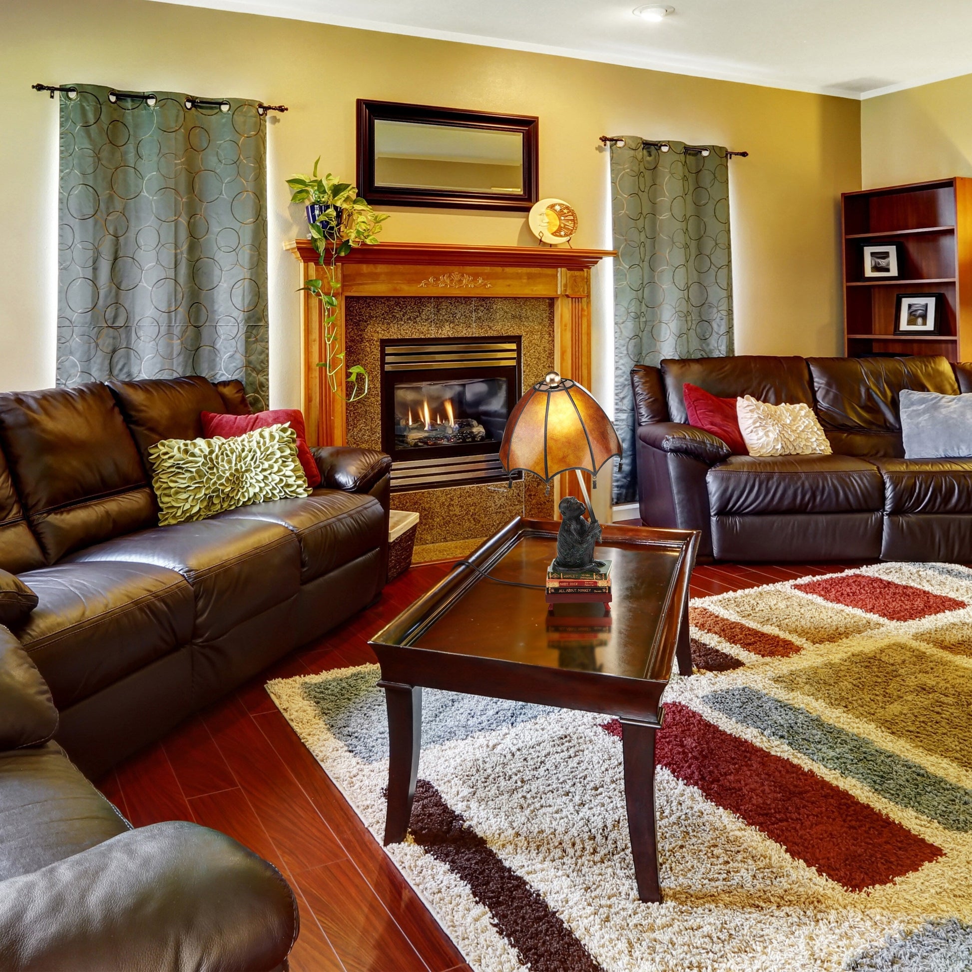 - L'abat-jour en mica ambré crée une lueur chaleureuse lorsqu'il est allumé