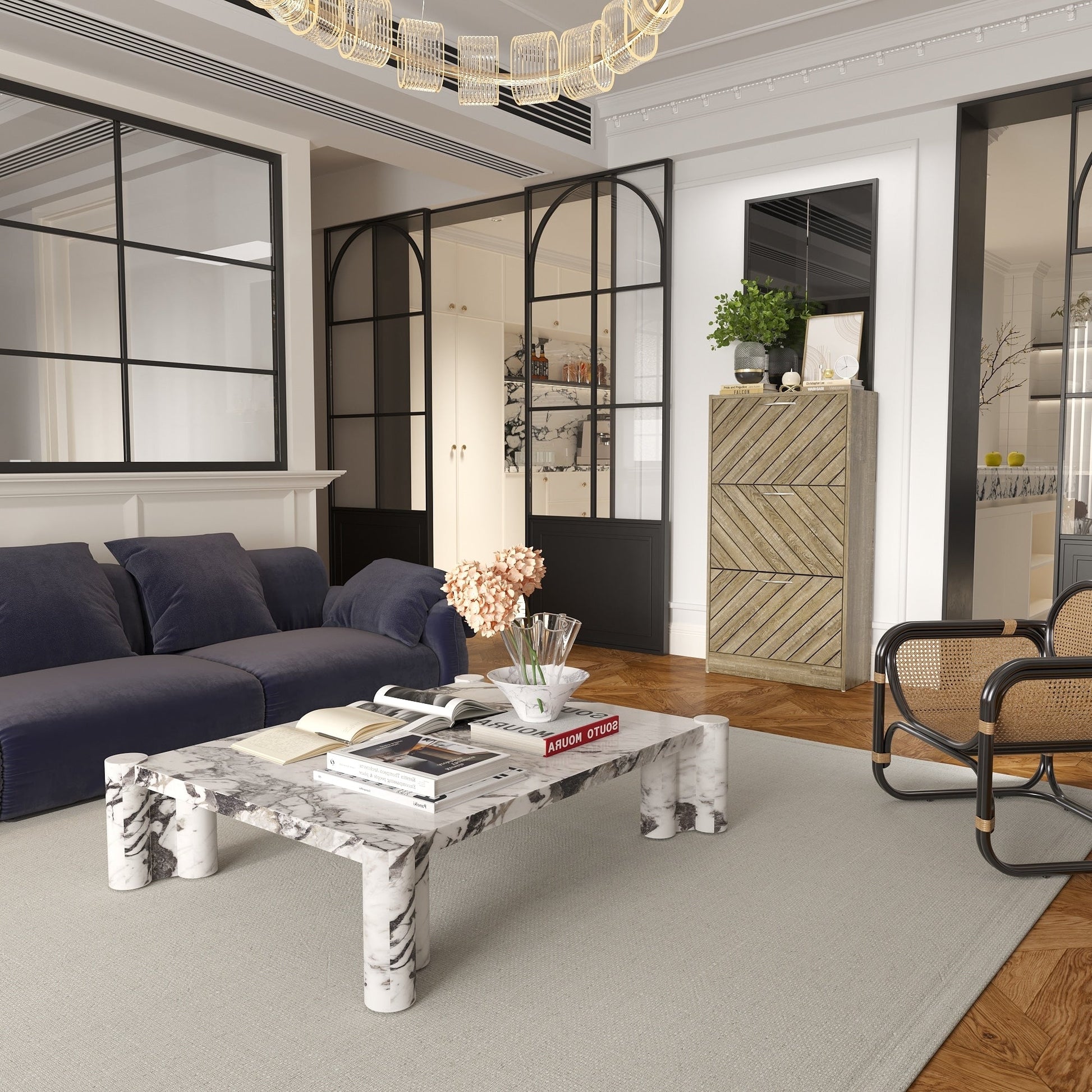 Organisez facilement votre collection de chaussures grâce au meuble à chaussures Kerrogee de 67 cm avec 3 tiroirs rabattables. Fabriqué en MDF imperméable et résistant, ce meuble à chaussures est doté de 3 tiroirs rabattables et d'une grande surface supérieure pour votre portefeuille et vos clés. Avec ses dimensions totales de 67 cm (L) x 24 cm (P) x 108 cm (H), il offre un espace généreux pour votre collection, tandis que son design compact vous permet de gagner de la place à la maison, au bureau ou en résidence. Le montage de ce meuble à chaussures est un jeu d'enfant : toutes les pièces et les instructions sont incluses. Profitez d'une vie sans encombrement et trouvez facilement les chaussures que vous cherchez grâce à ce rangement élégant et fonctionnel.