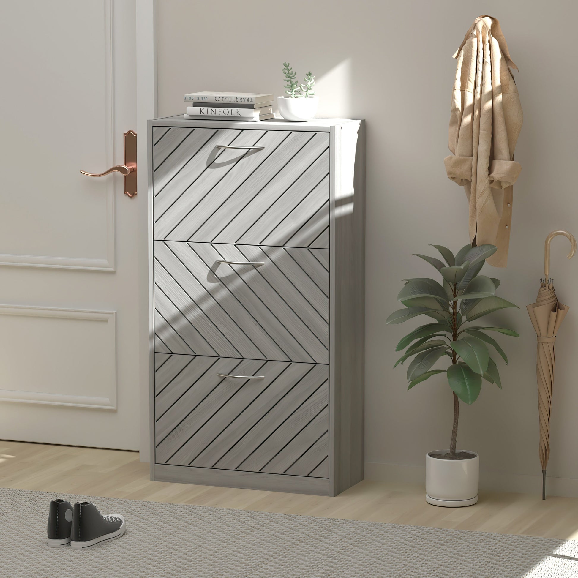 Meuble à chaussures 22,4 avec 3 tiroirs rabattables, bois/gris, par Kerrogee