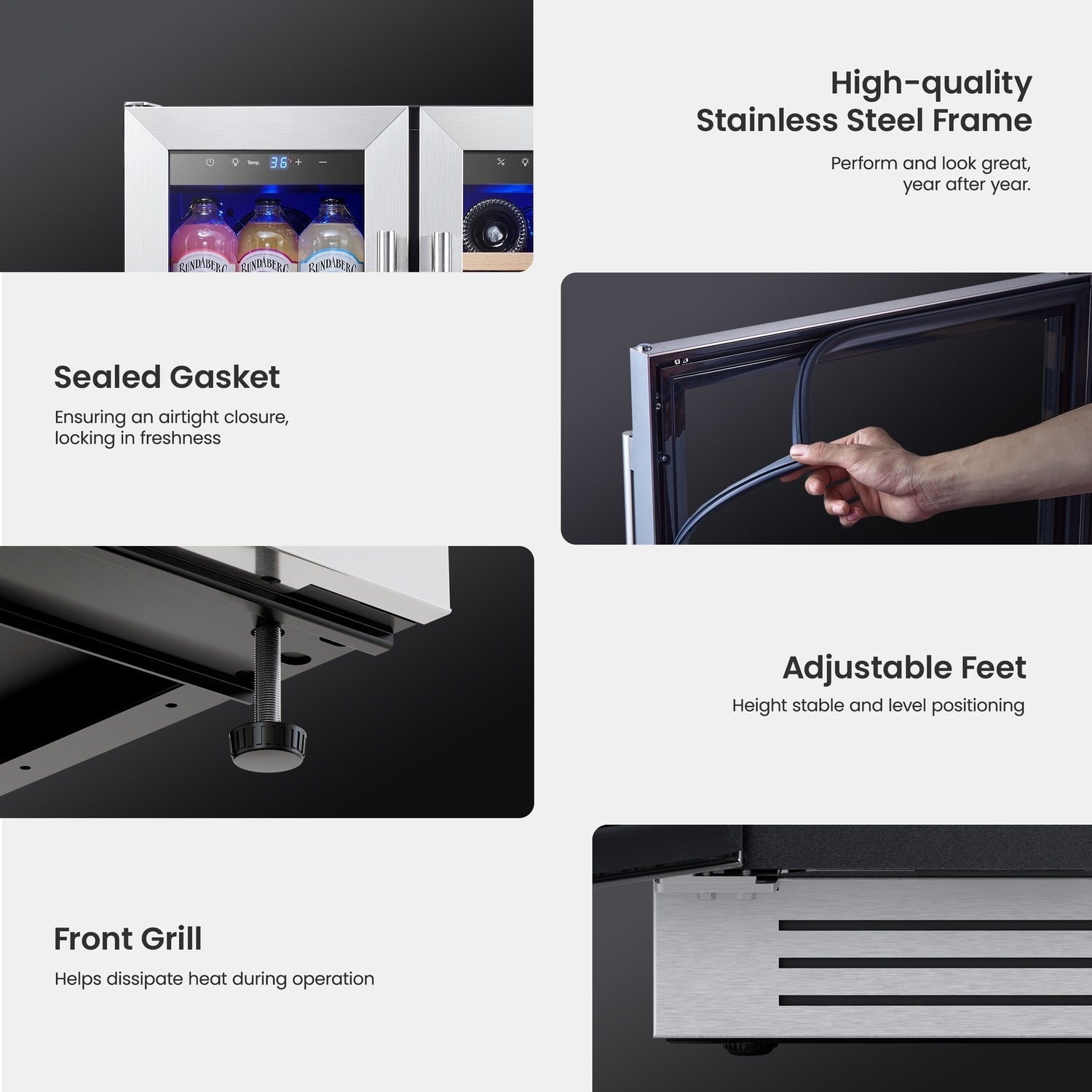 - Design sûr et élégant : Le verre résistant aux UV et la construction en acier inoxydable garantissent une durabilité accrue. Ce refroidisseur à vin et boissons s'intègre parfaitement à tout type de décoration intérieure grâce à son design élégant.