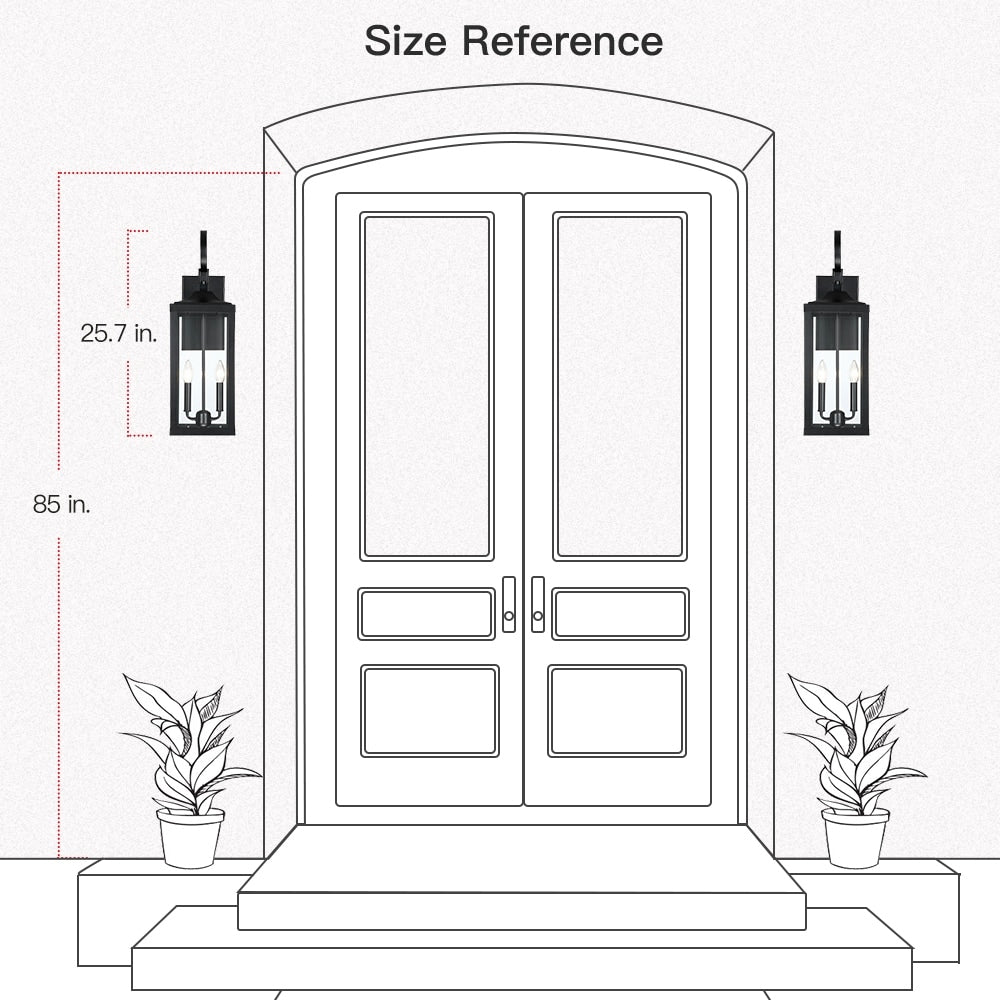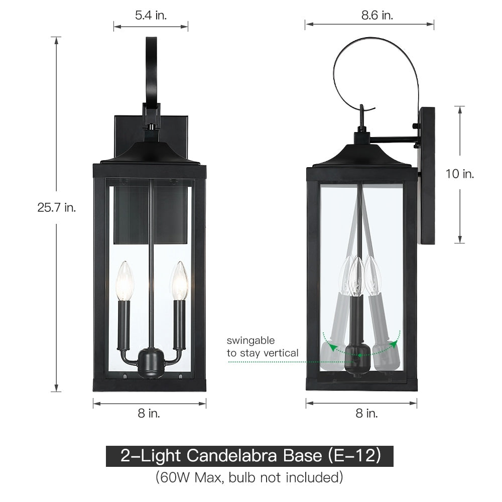 Applique murale d'extérieur noire à 2 lumières de 25,7 pouces de hauteur