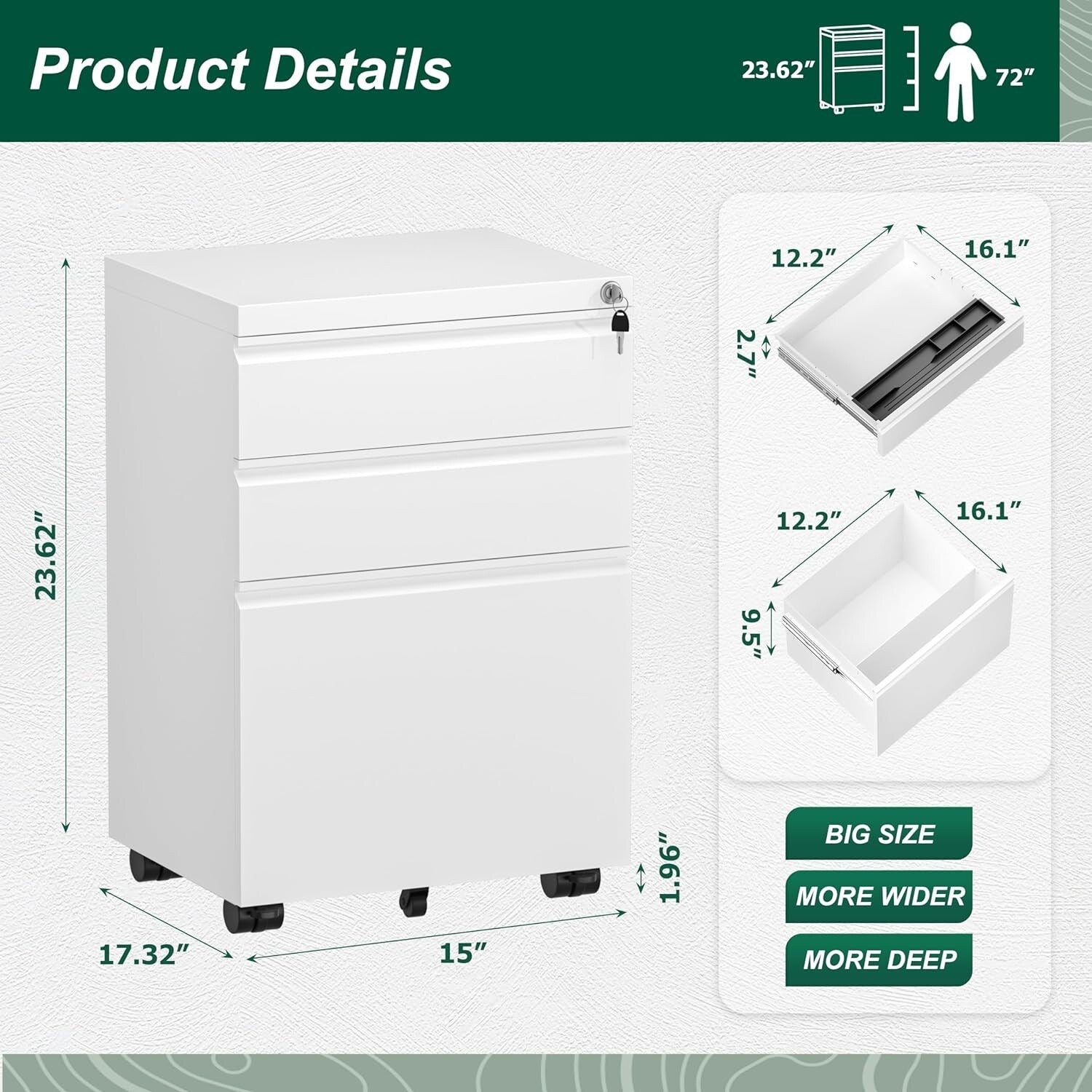 Classeur mobile/vertical à 3 tiroirs pour bureau à domicile