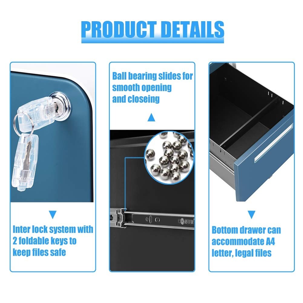 - Avec des clés de verrouillage et un système de verrouillage qui sécurise tous les tiroirs à la fois et garde vos documents importants en sécurité