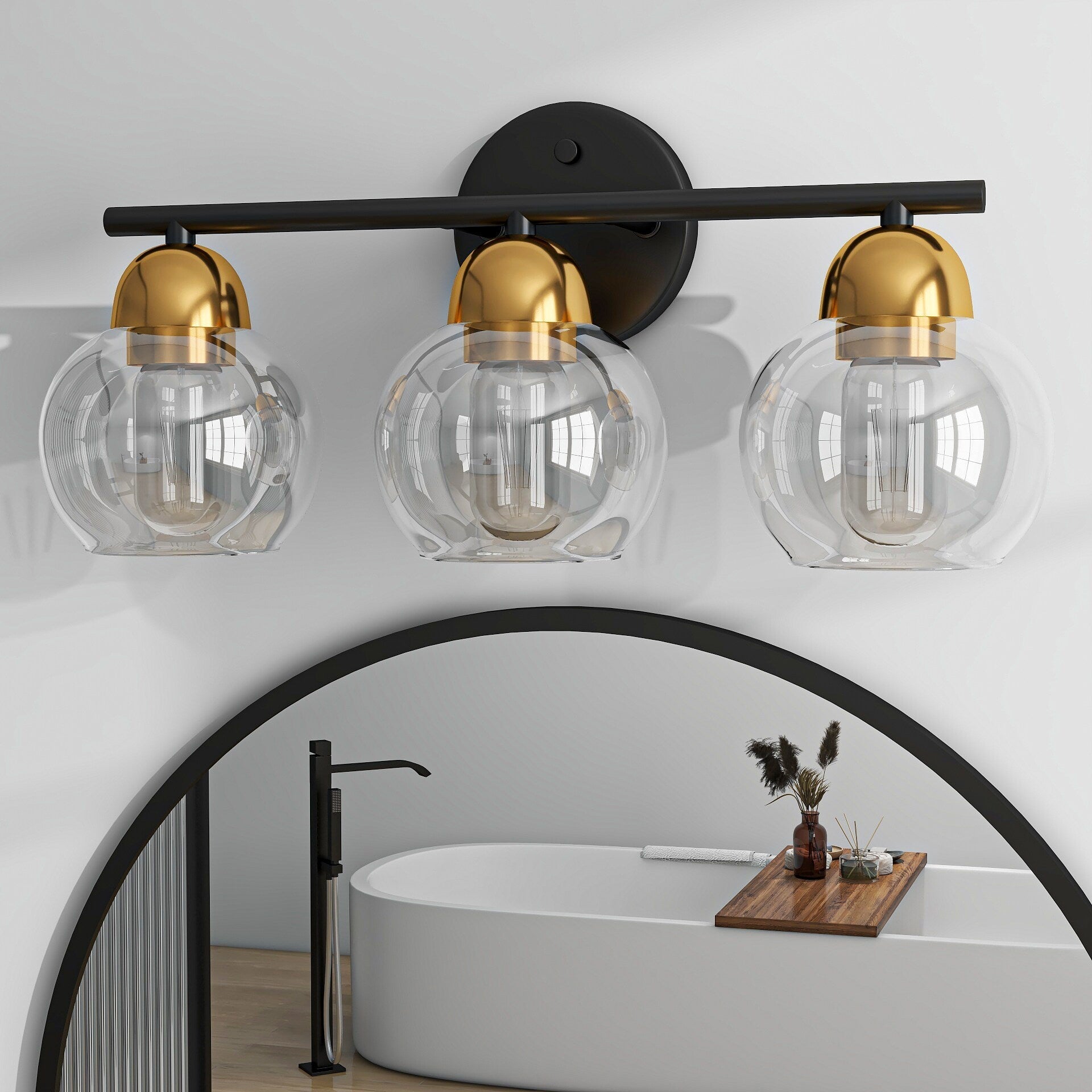Luminaires de salle de bain ronds en verre à 3 lumières