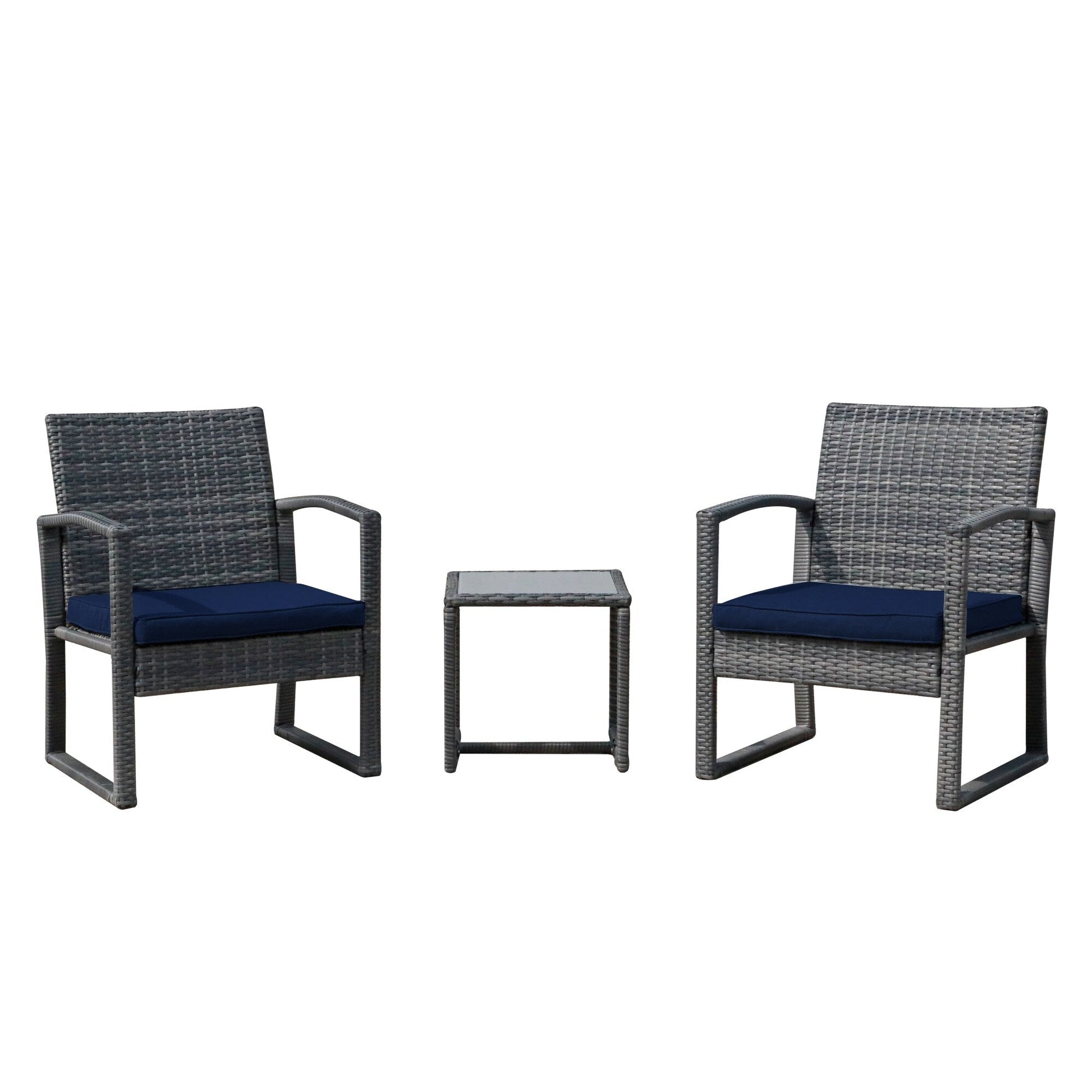 Ensemble de conversation d'extérieur en osier rembourré, 3 pièces