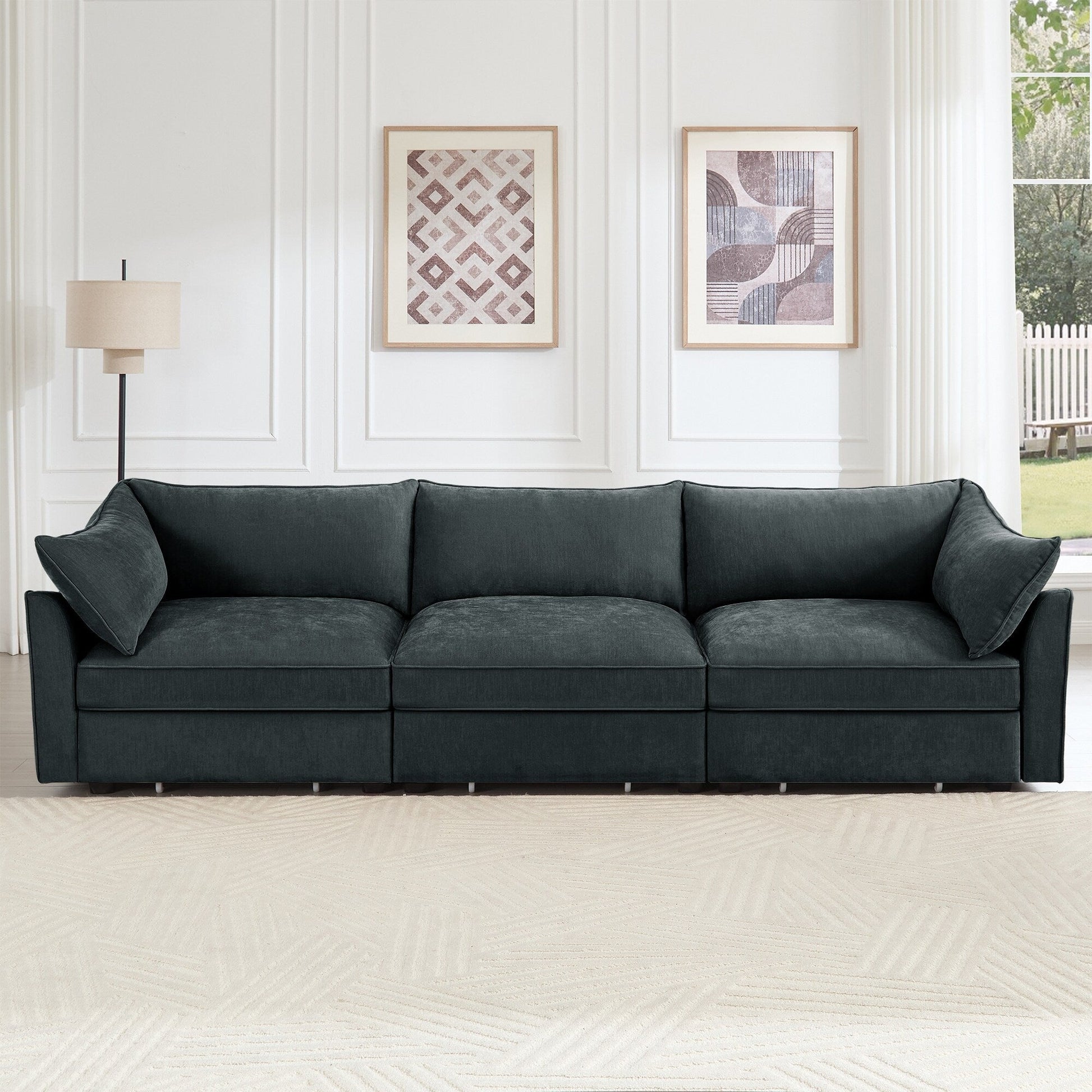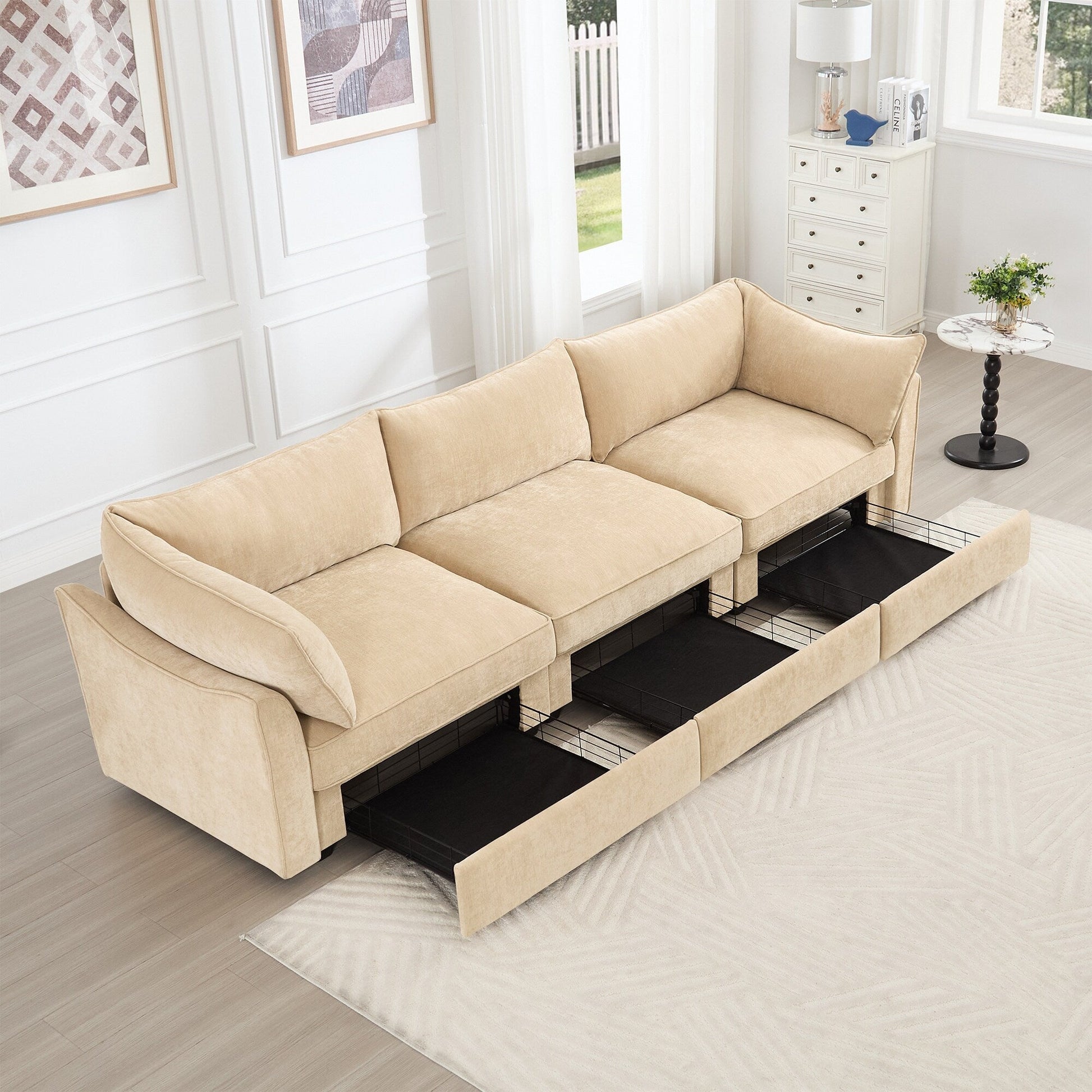 3-Seater Large Wide & Deep Sofa with Pull out Drawers Under Each Seat, Crescent-Shaped Armrests and Wraparound Back