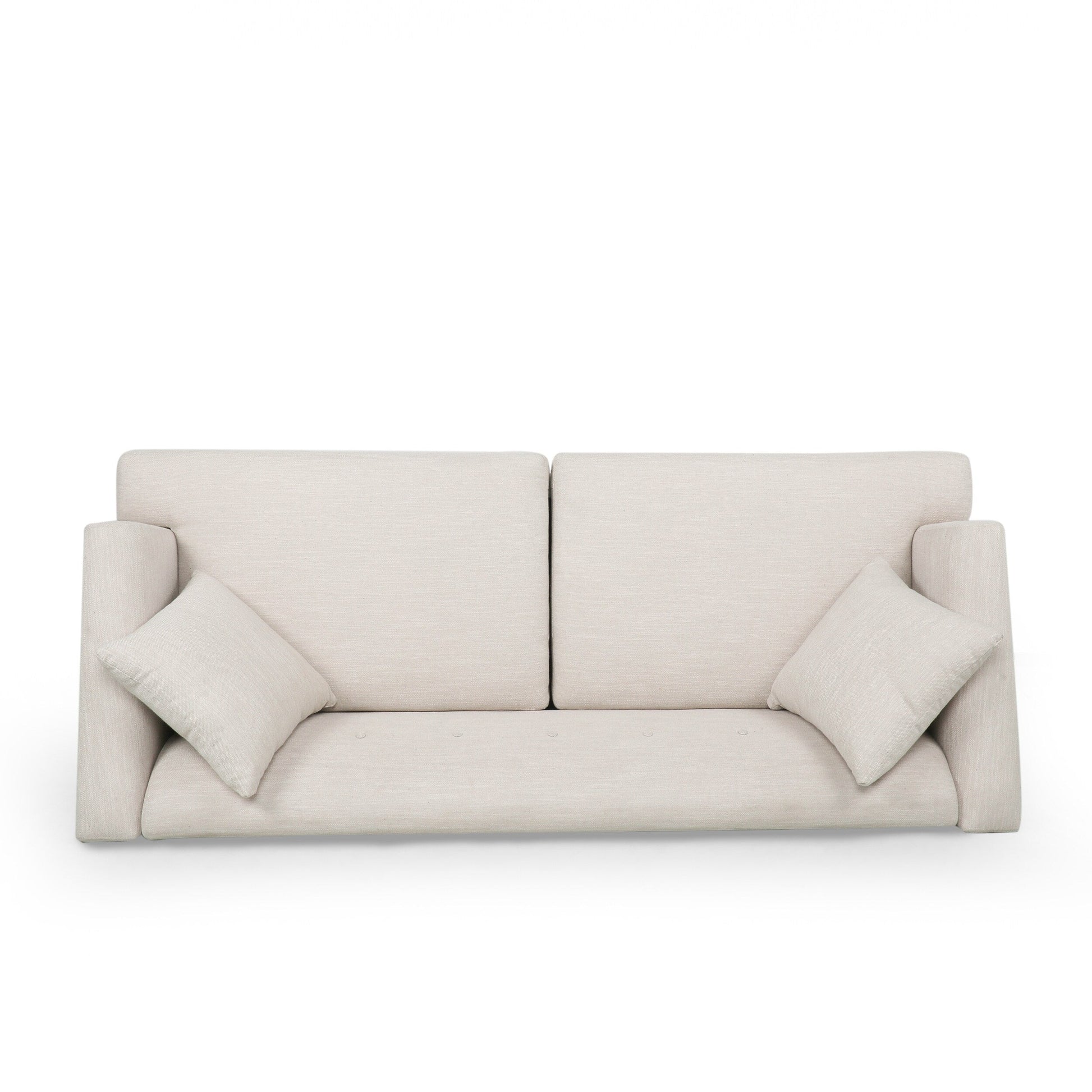 This takes a gorgeous classic look and brings an impressive modern twist, easily anchoring your decor in an atmosphere of mid-century modern elegance. This sofa is perfectly balanced atop bold wood legs and is topped with loose accent pillows, bringing stunning style and outstanding durability to your home.MID-CENTURY DESIGN: Blending together straight wood legs with clean lines and smooth upholstery, our sofa offers a mid-century look to your lounge space. With its clean lines and understated look, this sofa uses new materials to reimagine a traditional design.UPHOLSTERED: Our sofa is generously upholstered, giving any room a refined appearance. This provides a smooth, immaculate texture for this piece as well as cozy cushioning for plush seating.ACCENT PILLOWS: The square accent pillows help tie this contemporary sofa together, balancing out its turned legs and rounding out the sofa in general. This adds an extra dash of comfort to the piece.BIRCH WOOD LEGS: This sofa is supported by bold birch wood legs which offer an attractive look and durable structure. Its fine grain takes stains well, giving this piece a gorgeous finish.DIMENSIONS: Choose an accessory that is the perfect size for you and your furniture. This sofa is 73.50' W x 30.25' D x 29.25' H. You will love how much your space can transform with the simple addition of this charming couch.