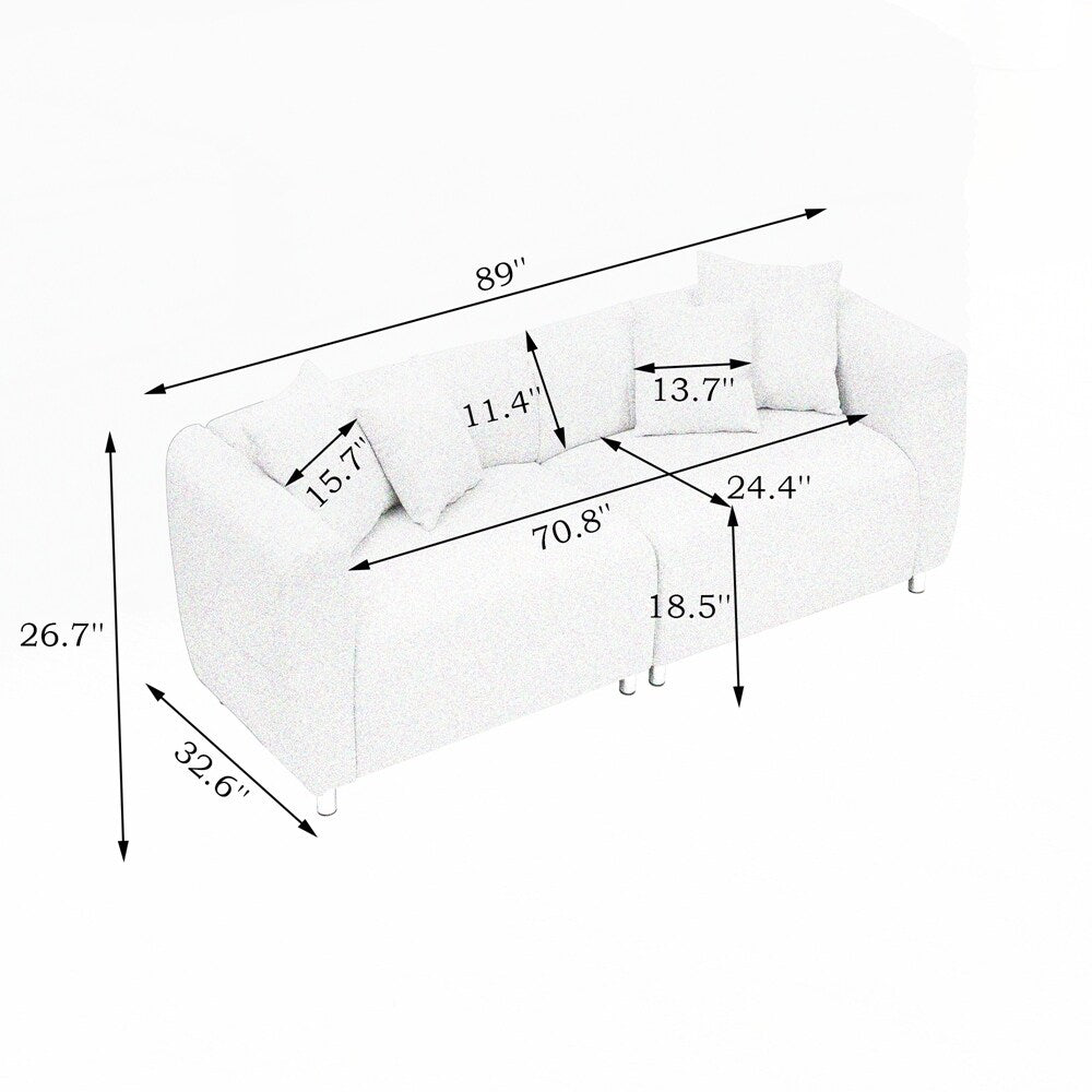 3 Seater Sofa Solid Wood Frame Couch with 4 Pillows