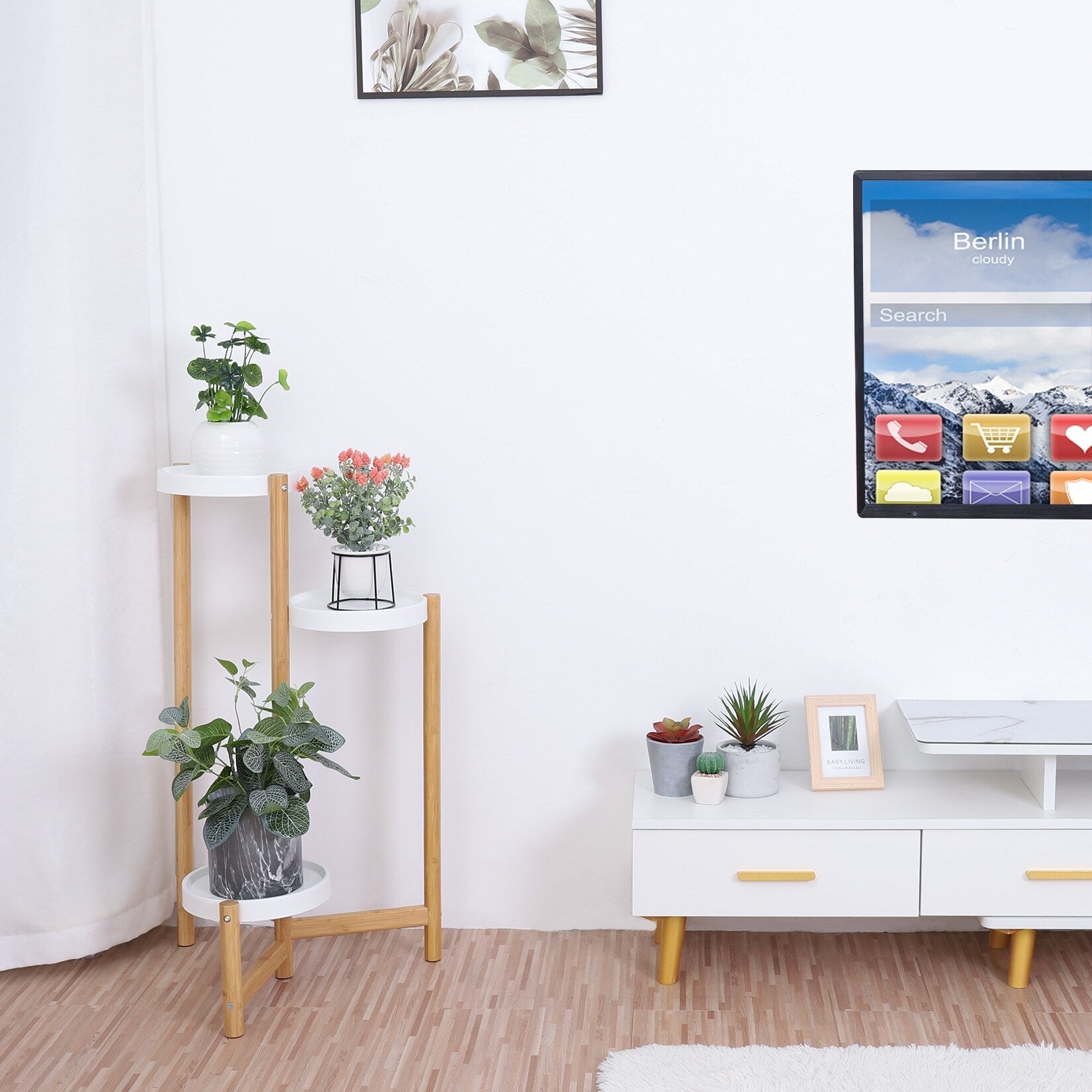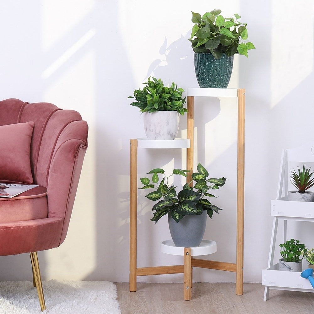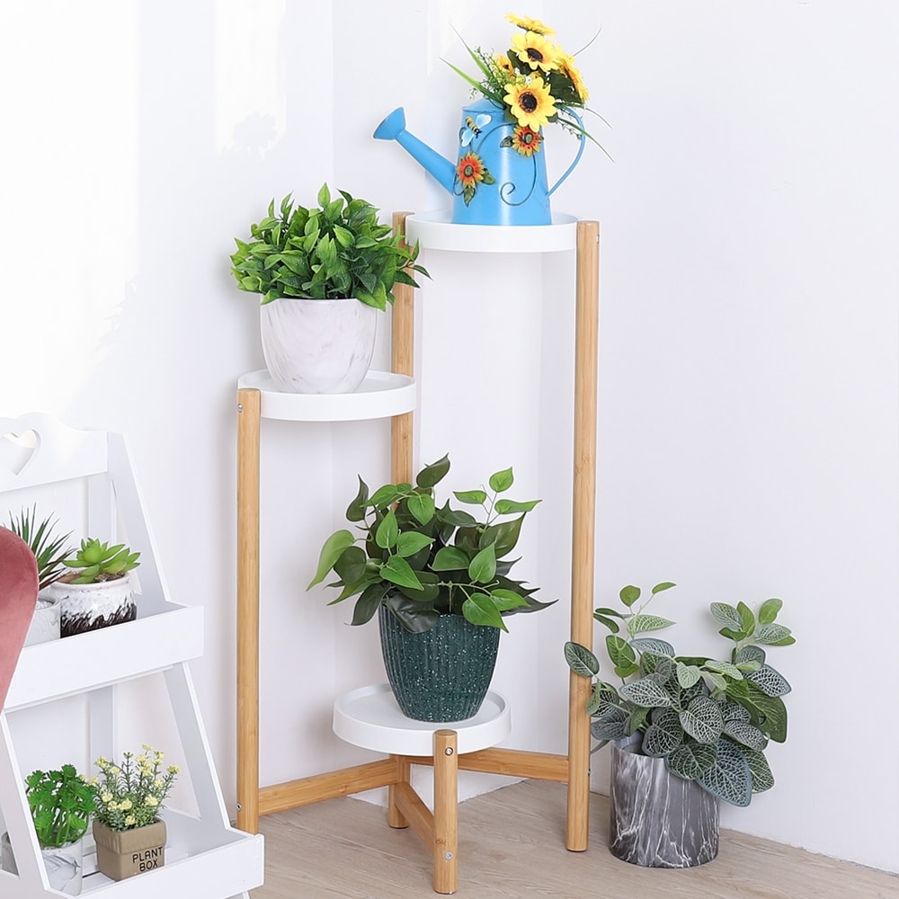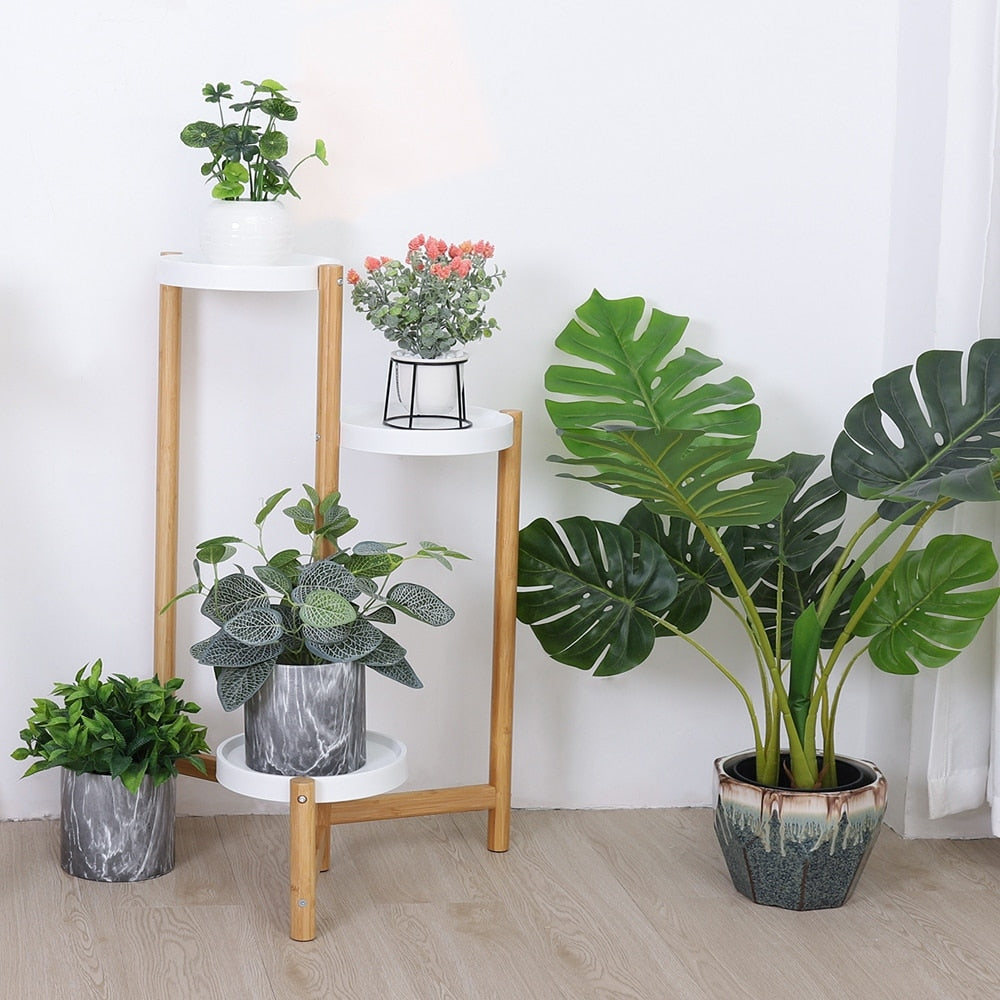 Support d'angle haut en bambou à 3 niveaux pour plantes, présentoir d'intérieur et d'extérieur