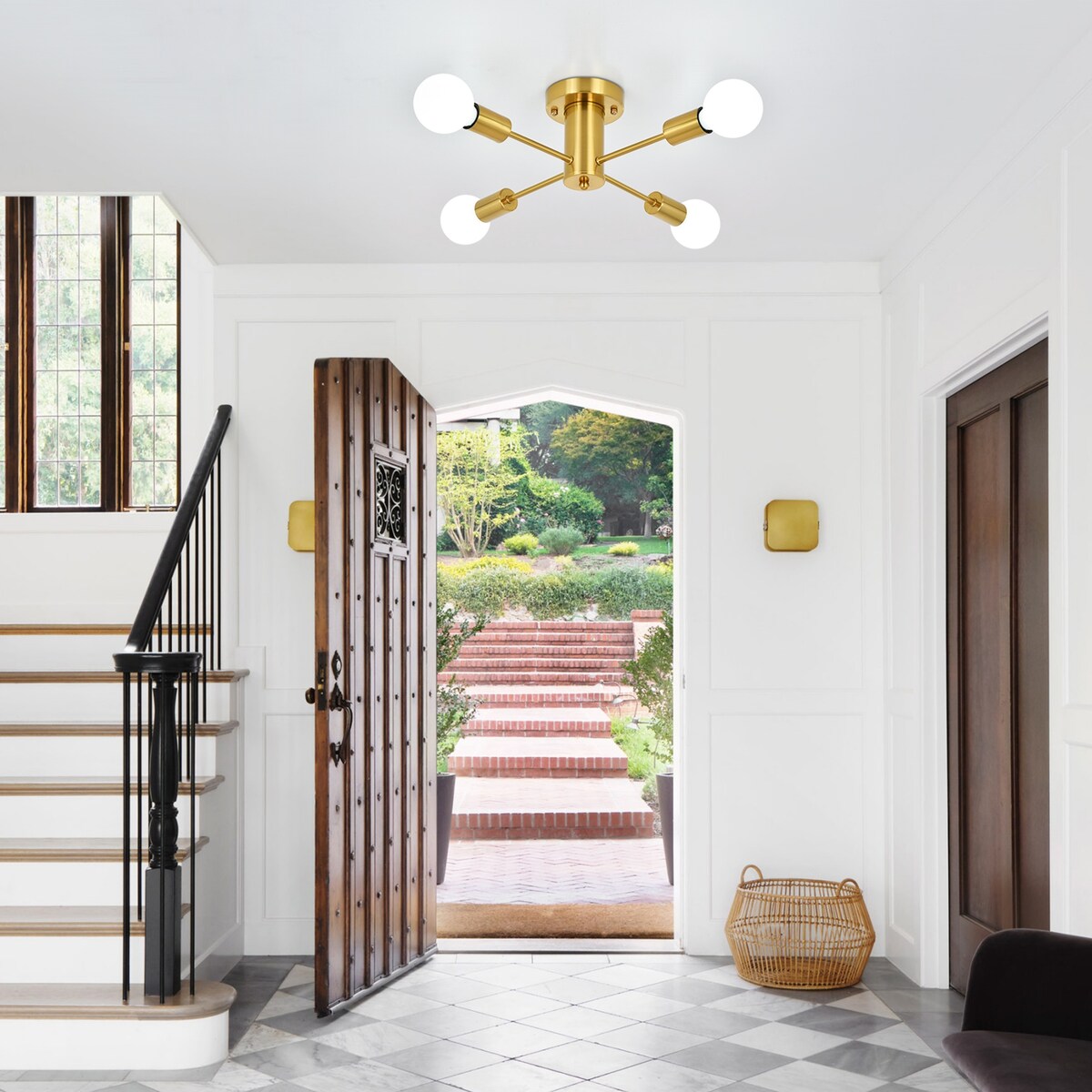 Ajoutez charme et personnalité à votre intérieur avec ce plafonnier semi-encastré simple et élégant. Fabriqué en fer métallique de haute qualité, ce plafonnier à 4 lumières arbore des lignes géométriques épurées, créant un équilibre parfait entre style rétro et contemporain. De plus en plus de décorateurs d'intérieur le choisissent pour leurs clients, leur permettant de créer un intérieur haut de gamme et de créer un nouveau style. Idéal pour les chambres, les salons, les salles à manger, les cuisines, les halls, les salles à manger, les restaurants buffets et tout autre espace.