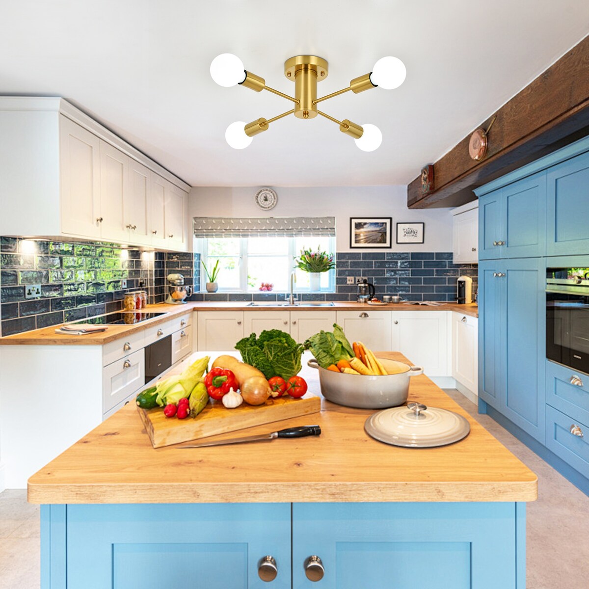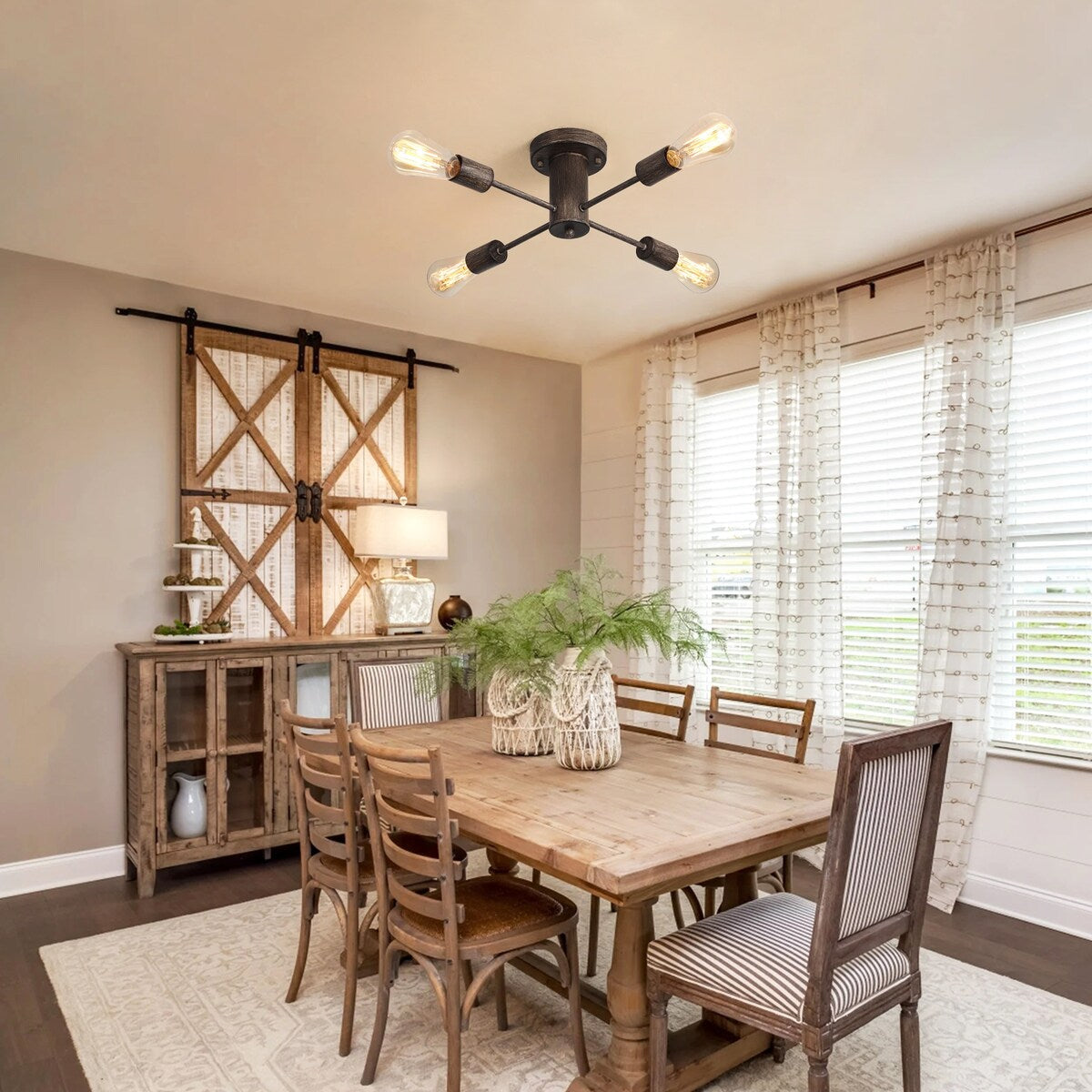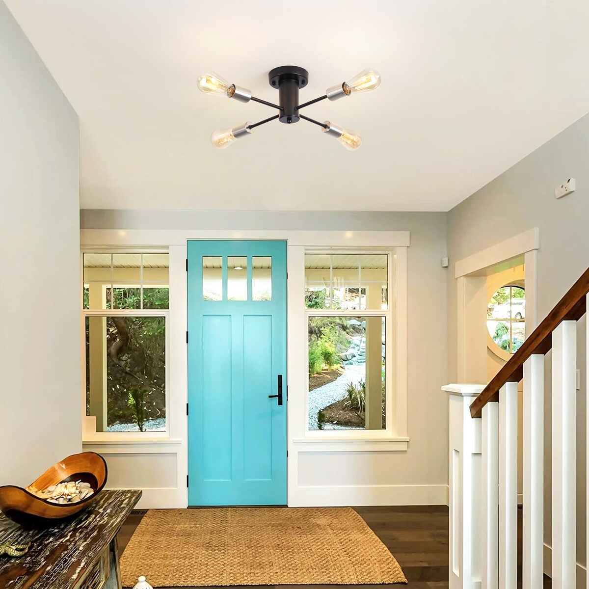 Plafonnier semi-encastré industriel à 4 lampes pour cuisine, salle à manger, chambre à coucher, bureau, salon - N/A