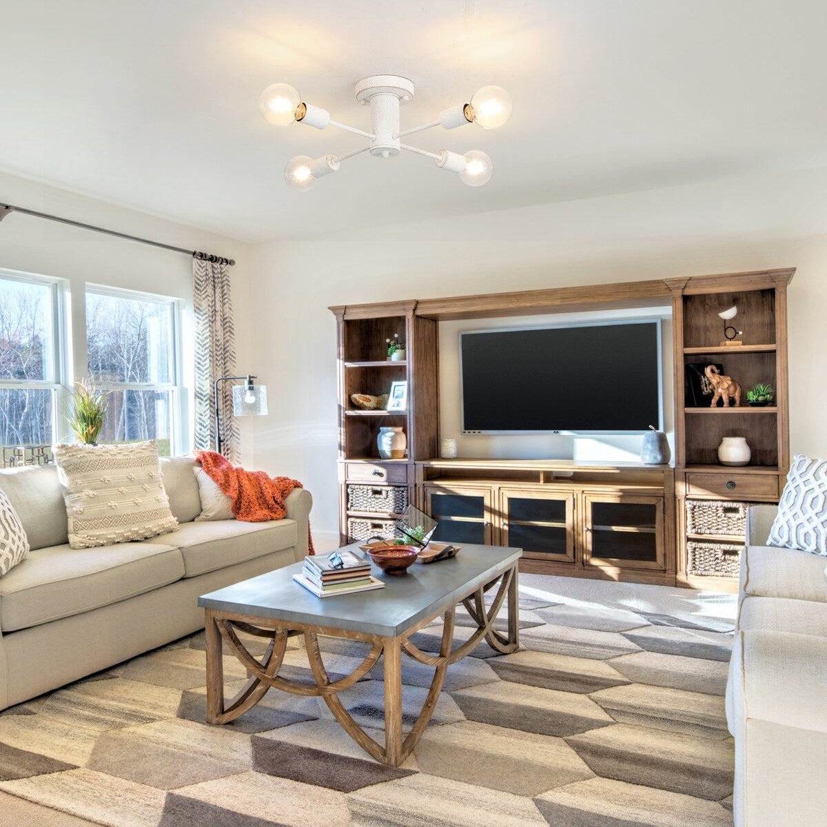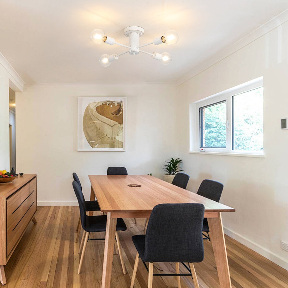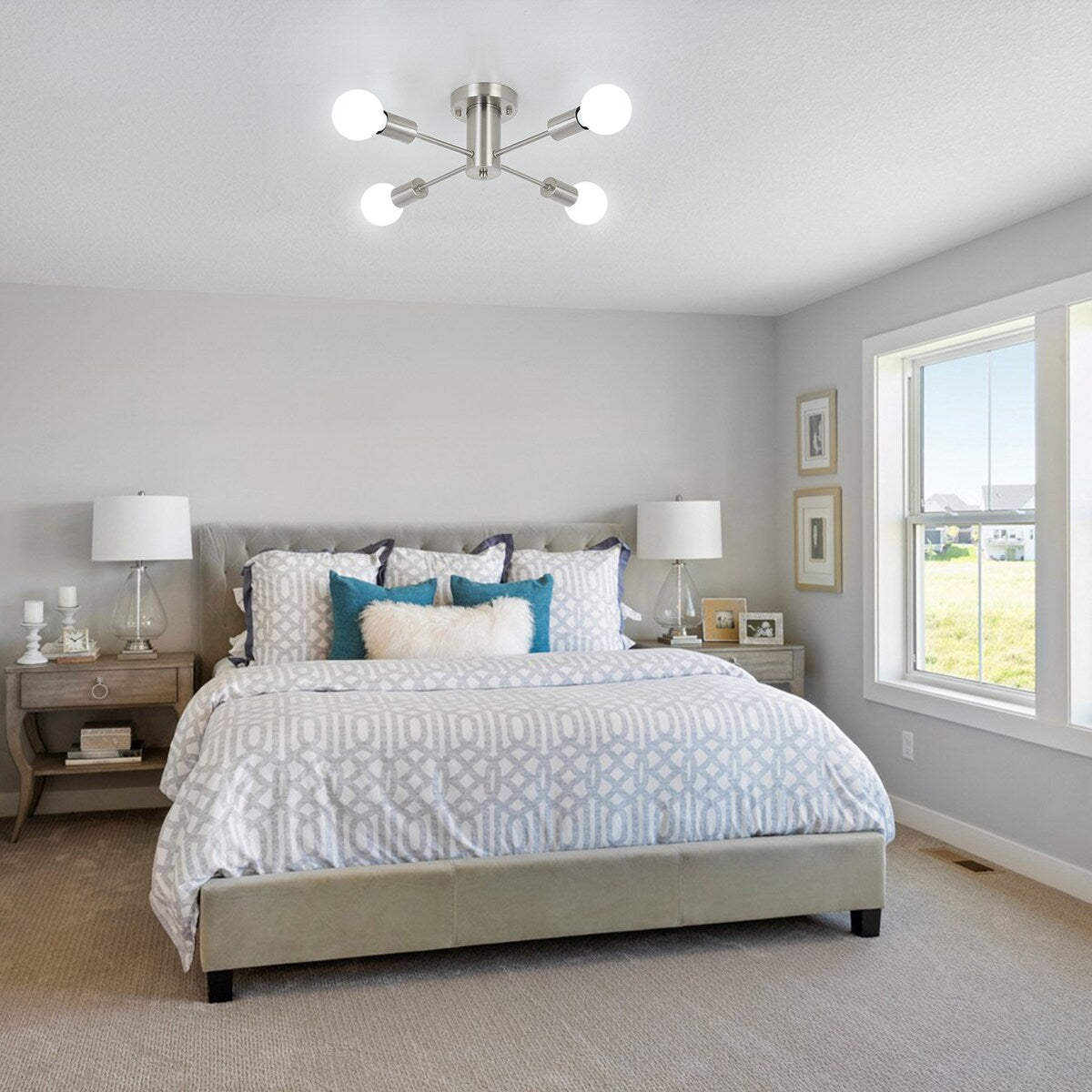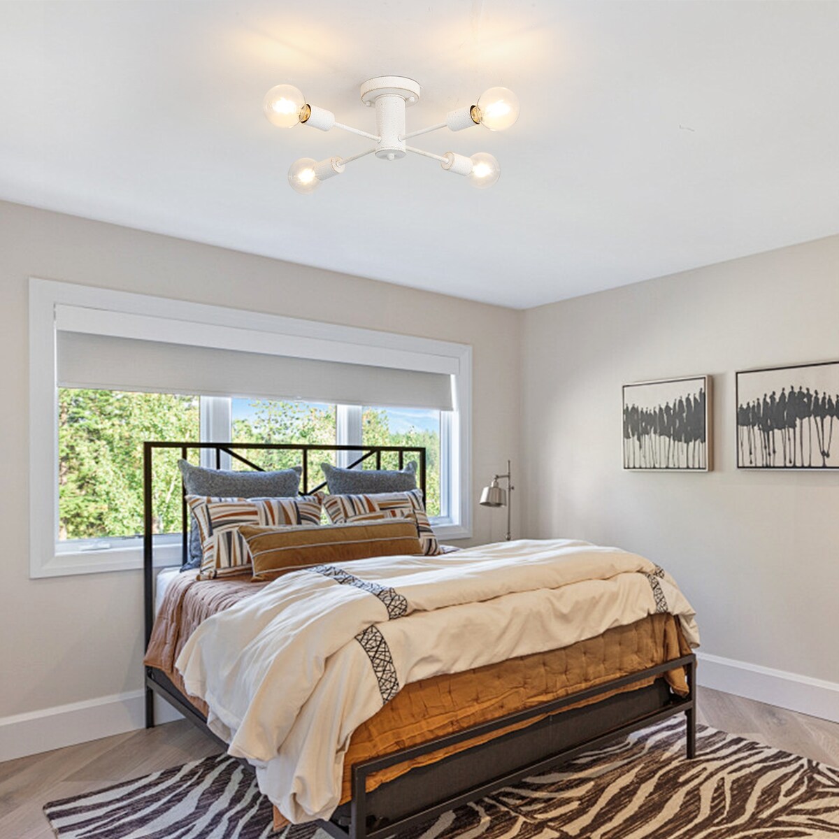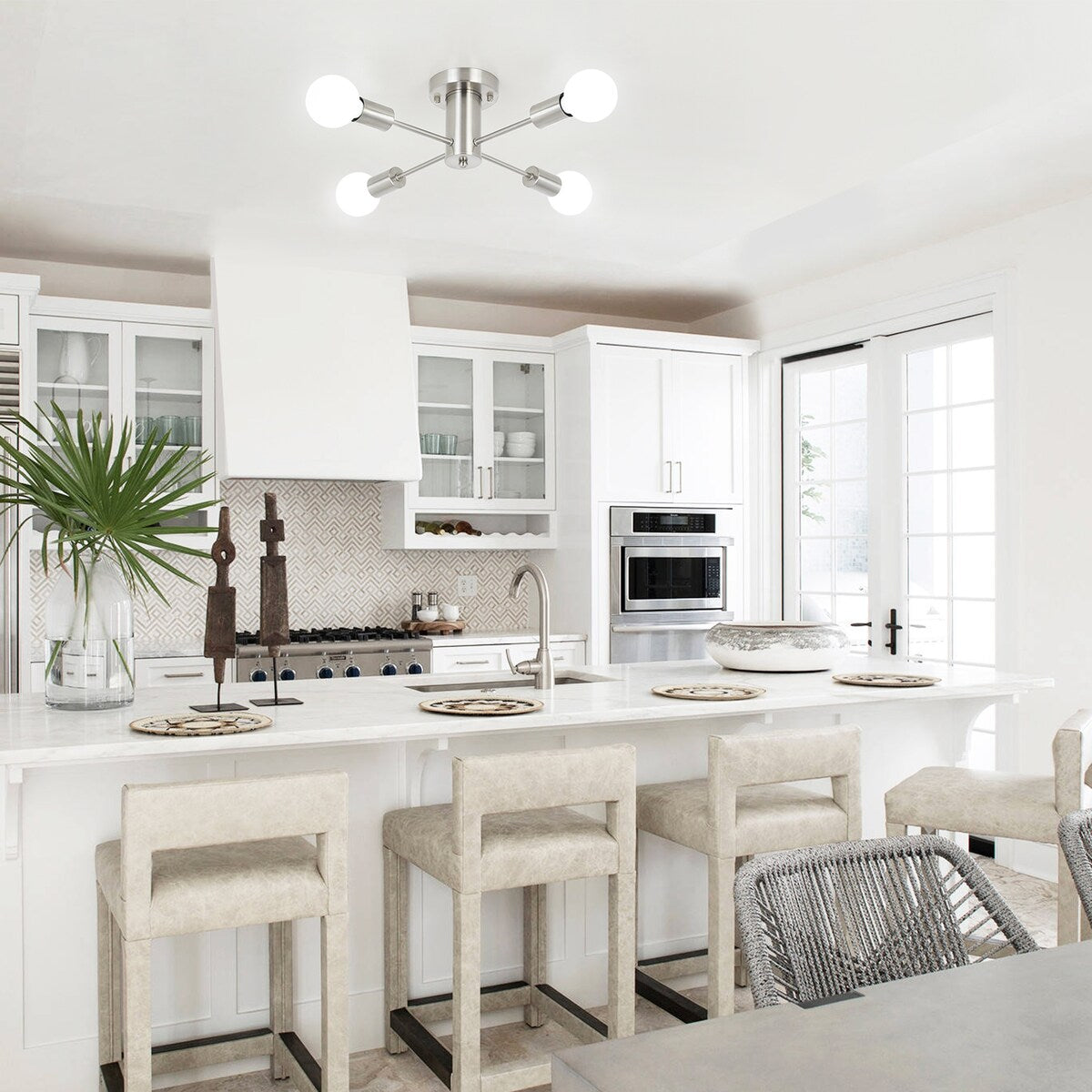 Type d'ampoule disponible : Ce plafonnier Spoutnik nécessite 4 ampoules à culot E26 (60 W max.), compatibles avec les ampoules LED, à incandescence ou fluocompactes (AMPOULES NON INCLUSES). En utilisant une ampoule à intensité variable et un variateur compatible, vous pouvez régler l'intensité lumineuse pour obtenir l'effet lumineux souhaité (interrupteur non inclus).