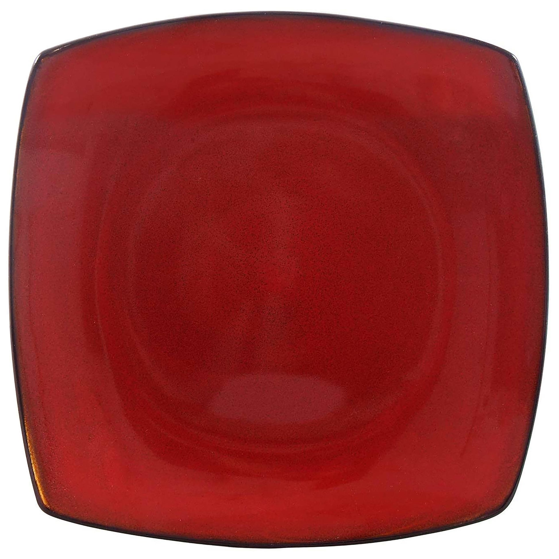 Servez vos plats préférés dans ce service de 4 assiettes plates carrées en grès Hometrends Soho Lounge de 26,7 cm. Leur forme carrée et douce leur confère un style contemporain et élégant, les distinguant des assiettes traditionnelles. Le dessous est noir mat, tandis que le dessus est rouge avec un magnifique vernis réactif. Fabriquées en grès durable, ces assiettes sont robustes et passent au lave-vaisselle et au micro-ondes, ce qui les rend idéales pour un usage quotidien. Savourez tous vos plats, des repas aux amuse-gueules, dans ces magnifiques assiettes. Dimensions : 26,7 x 26,7 x 38,8 cm. Poids : 900 g.